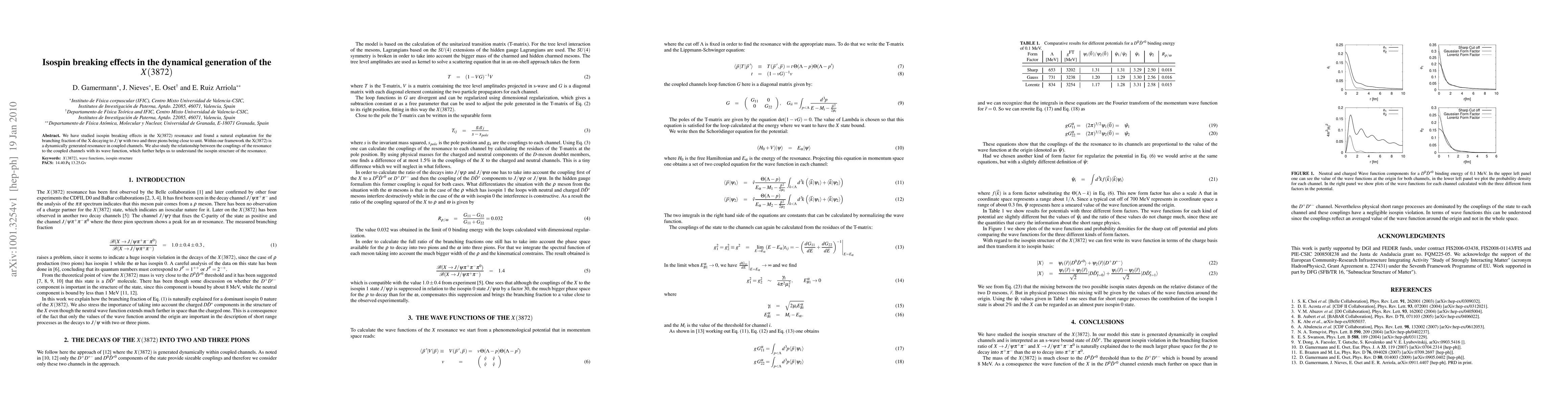 We have studied isospin breaking effects in the X(3872) resonance and found a natural explanation for the branching fraction of the X decaying to $J/\psi$ with two and three pions being close to unit. Within our framework the X(3872) is a dynamically generated resonance in coupled channels. We also study the relationship between the couplings of the resonance to the coupled channels with its wave function, which further helps us to understand the isospin structure of the resonance.