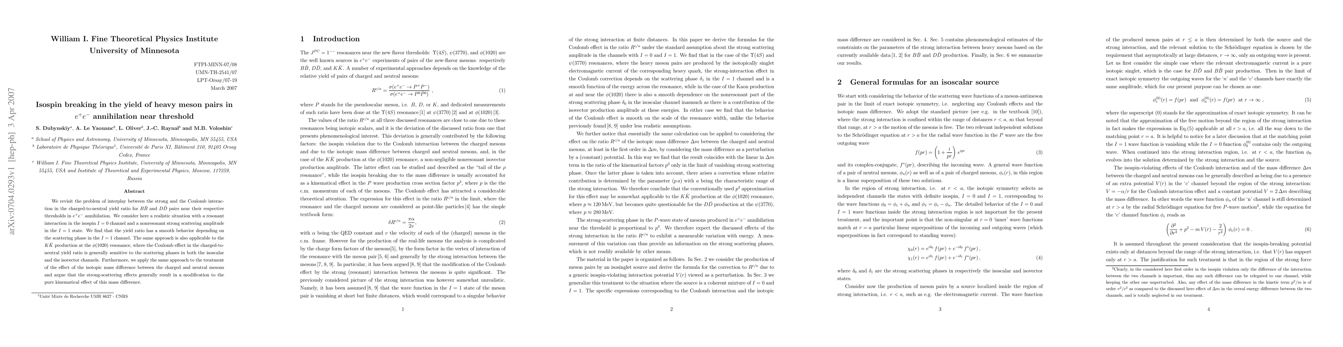 We revisit the problem of interplay between the strong and the Coulomb interaction in the charged-to-neutral yield ratio for $B {\bar B}$ and $D {\bar D}$ pairs near their respective thresholds in $e^+e^-$ annihilation. We consider here a realistic situation with a resonant interaction in the isospin I=0 channel and a nonresonant strong scattering amplitude in the I=1 state. We find that the yield ratio has a smooth behavior depending on the scattering phase in the I=1 channel. The same approach is also applicable to the $K {\bar K}$ production at the $\phi(1020)$ resonance, where the Coulomb effect in the charged-to-neutral yield ratio is generally sensitive to the scattering phases in both the isoscalar and the isovector channels. Furthermore, we apply the same approach to the treatment of the effect of the isotopic mass difference between the charged and neutral mesons and argue that the strong-scattering effects generally result in a modification to the pure kinematical effect of this mass difference.