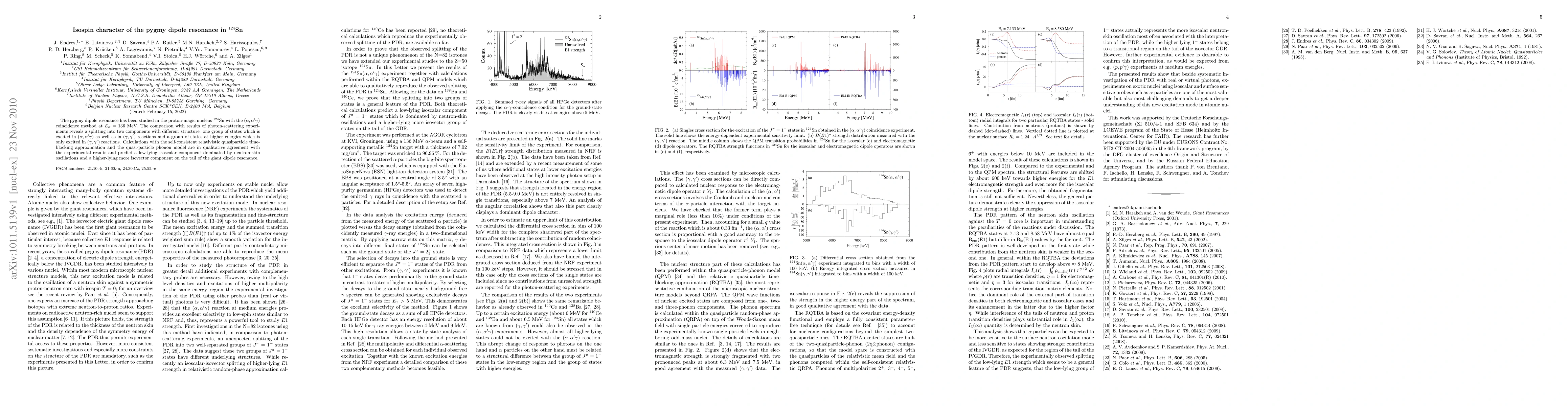 This study investigates the pygmy dipole resonance in the nucleus 124Sn using the (a,a'g) method, revealing a splitting into two components: one common in both (a,a'g) and (g,g') reactions, and another at higher energies exclusive to (g,g') reactions. Theoretical models support the presence of a low-lying isoscalar component and a higher-lying isovector component.