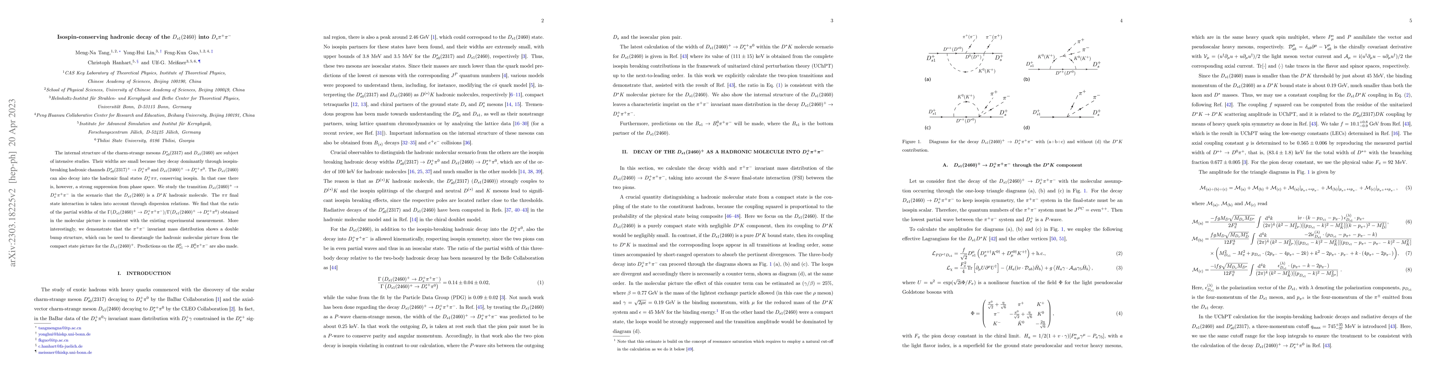The internal structure of the charm-strange mesons $D_{s0}^*(2317)$ and $D_{s1}(2460)$ are subject of intensive studies. Their widths are small because they decay dominantly through isospin-breaking hadronic channels $D_{s0}^*(2317)^+\to D_s^+\pi^0$ and $D_{s1}(2460)^+\to D_s^{*+}\pi^0$. The $D_{s1}(2460)$ can also decay into the hadronic final states $D_s^+\pi\pi$, conserving isospin. In that case there is, however, a strong suppression from phase space. We study the transition $D_{s1}(2460)^+\to D_s^+\pi^+\pi^-$ in the scenario that the $D_{s1}(2460)$ is a $D^*K$ hadronic molecule. The $\pi\pi$ final state interaction is taken into account through dispersion relations. We find that the ratio of the partial widths of the $\Gamma(D_{s1}(2460)^+\to D_s^+\pi^+\pi^-)/\Gamma(D_{s1}(2460)^+\to D_s^{*+}\pi^0)$ obtained in the molecular picture is consistent with the existing experimental measurement. More interestingly, we demonstrate that the $\pi^+\pi^-$ invariant mass distribution shows a double bump structure, which can be used to disentangle the hadronic molecular picture from the compact state picture for the $D_{s1}(2460)^+$. Predictions on the $B_{s1}^0\to B_s^0\pi^+\pi^-$ are also made.