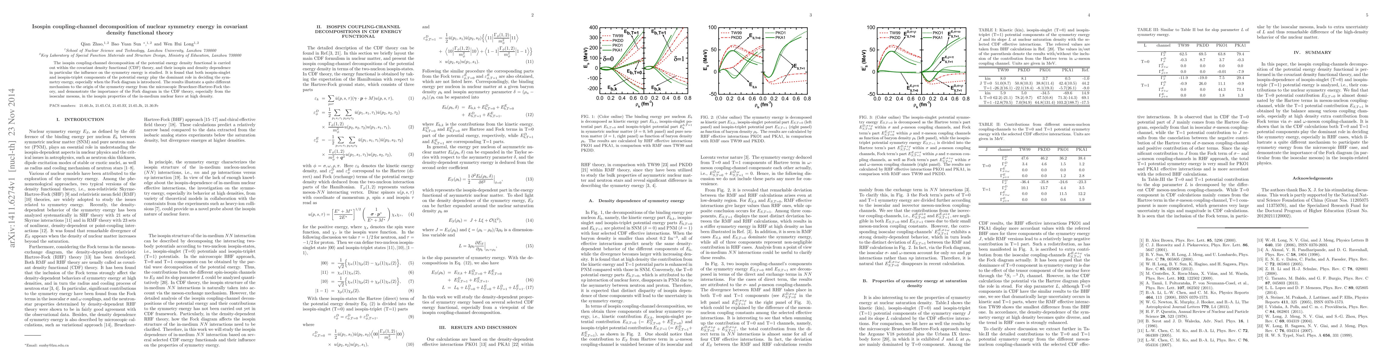The isospin coupling-channel decomposition of the potential energy density functional is carried out within the covariant density functional theory, and their isospin and density dependence in particular the influence on the symmetry energy is studied. It is found that both isospin-singlet and isospin-triplet components of the potential energy play the dominant role in deciding the symmetry energy, especially when the Fock diagram is introduced. The results illustrate a quite different mechanism to the origin of the symmetry energy from the microscopic Brueckner-Hartree-Fock theory, and demonstrate the importance of the Fork diagram in the CDF theory, especially from the isoscalar mesons, in the isospin properties of the in-medium nuclear force at high density.