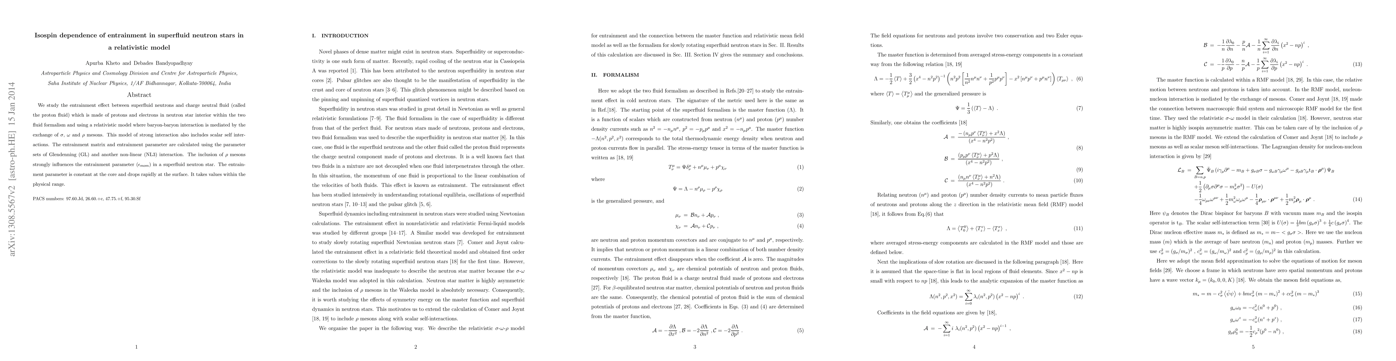 This research investigates the entrainment effect in superfluid neutron stars, focusing on the interaction between superfluid neutrons and a proton fluid, using a relativistic model. The study finds that the inclusion of $\rho$ mesons significantly influences the entrainment parameter, which remains constant in the core but drops rapidly at the surface, remaining within physical limits.