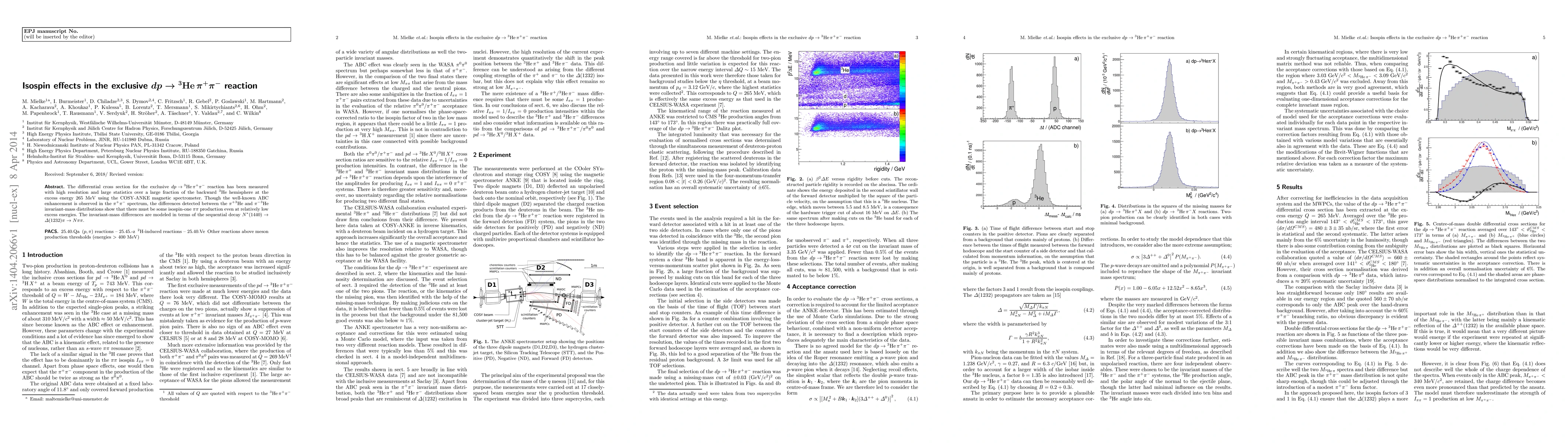 The differential cross section for the exclusive dp -> 3He{\pi}+{\pi}- reaction has been measured with high resolution and large statistics over a large fraction of the backward 3He hemisphere at the excess energy 265 MeV using the COSY-ANKE magnetic spectrometer. Though the well-known ABC enhancement is observed in the {\pi}+{\pi}- spectrum, the differences detected between the {\pi}+3He and {\pi}-3He invariant-mass distributions show that there must be some isospin-one {\pi}{\pi} production even at relatively low excess energies. The invariant-mass differences are modeled in terms of the sequential decay N*(1440) -> Delta(1232){\pi} -> N{\pi}{\pi}.