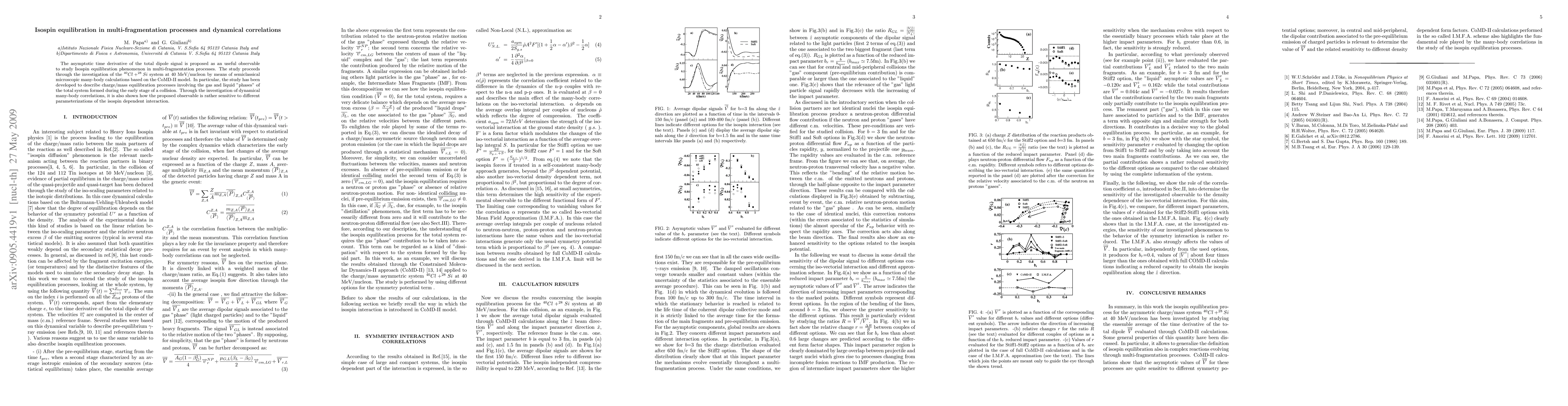This paper proposes the asymptotic time derivative of the total dipole signal as an observable to study isospin equilibration in multi-fragmentation processes, using the $^{40}Cl+^{28}Si$ system at 40 MeV/nucleon. The study reveals how this observable is sensitive to different parameterizations of isospin-dependent interactions and highlights dynamical many-body correlations during early collision stages.