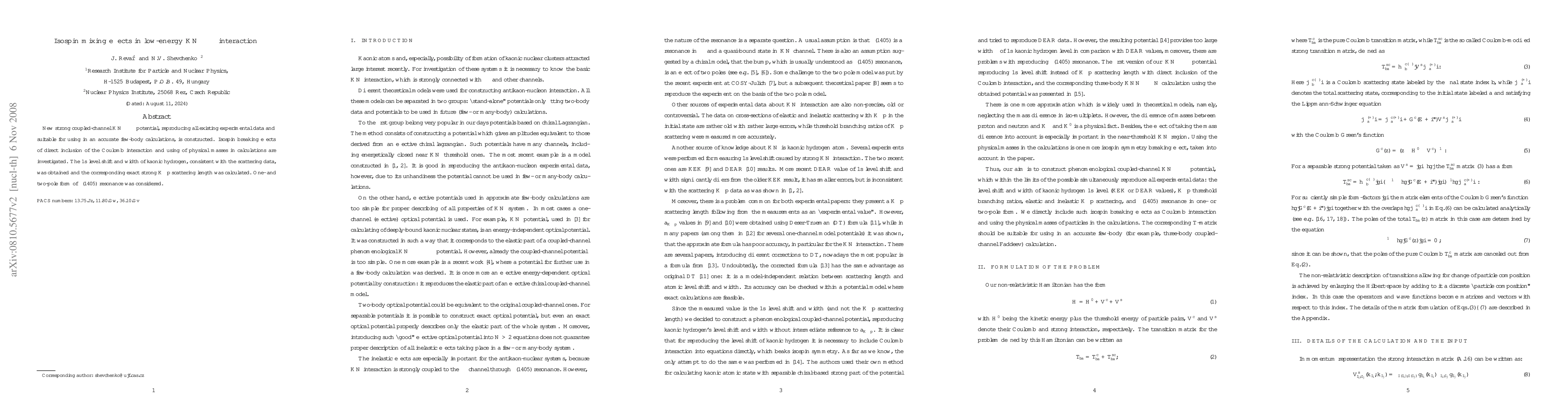 This paper constructs a new strong coupled-channel $\bar{K}N - \pi \Sigma$ potential that accurately reproduces existing experimental data and investigates isospin mixing effects, including Coulomb interaction and physical masses. It also calculates the $1 s$ level shift and width of kaonic hydrogen, and considers the $\Lambda(1405)$ resonance in one- and two-pole forms.