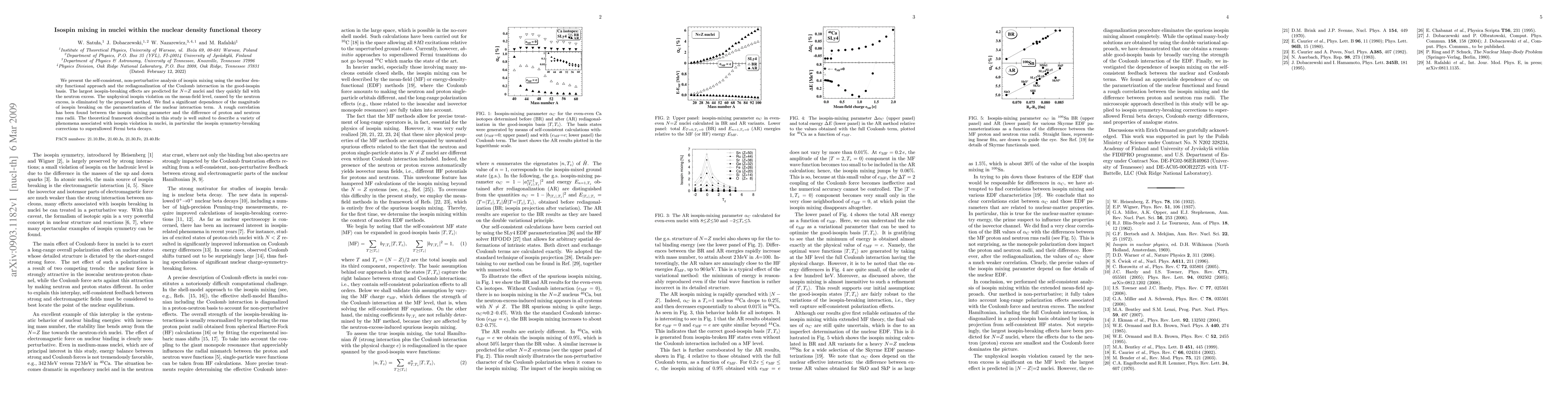 This paper analyzes isospin mixing in nuclei using nuclear density functional theory, revealing significant isospin-breaking effects in N = Z nuclei that diminish with neutron excess. The study proposes a method to eliminate mean-field isospin violation and finds a correlation between isospin mixing and the difference in proton and neutron rms radii.