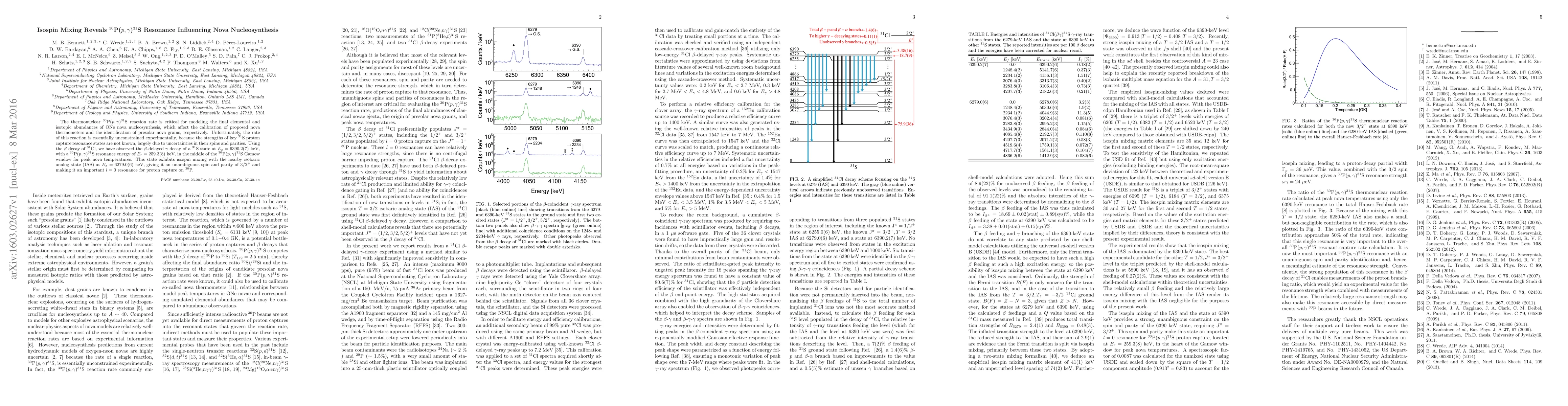 Researchers discovered a key resonance in the $^{30}$P($p, u$)$^{31}$S reaction, which helps predict nova nucleosynthesis, and characterized its spin and parity through isospin mixing with an nearby state.
