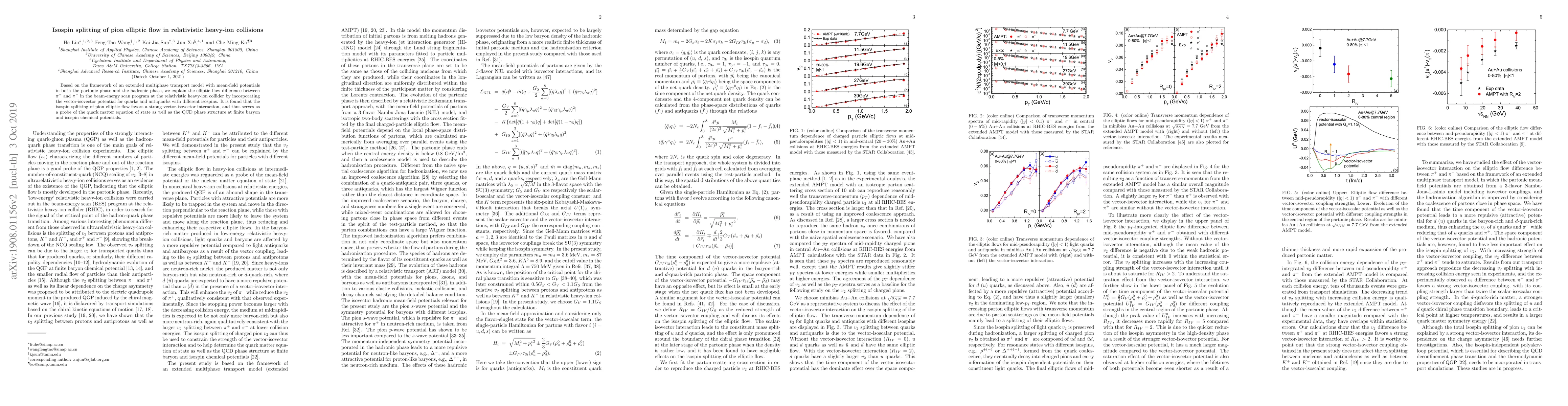 This paper uses an extended multiphase transport model to explain the elliptic flow difference between $\pi^+$ and $\pi^-$ in relativistic heavy-ion collisions, attributing it to a strong vector-isovector interaction. The findings suggest this isospin splitting can probe the quark matter equation of state and QCD phase structure.