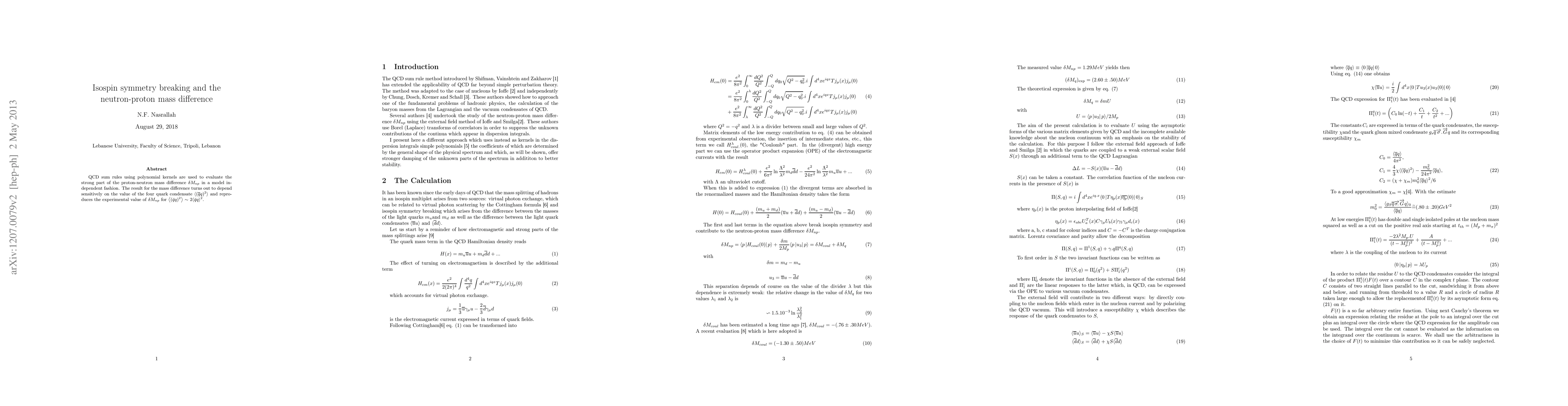 This paper uses QCD sum rules with polynomial kernels to model the proton-neutron mass difference, finding that the result is highly dependent on the four quark condensate <(qq)^2>, and matches experimental values when <(qq)^2> is approximately 2<qq>^2.