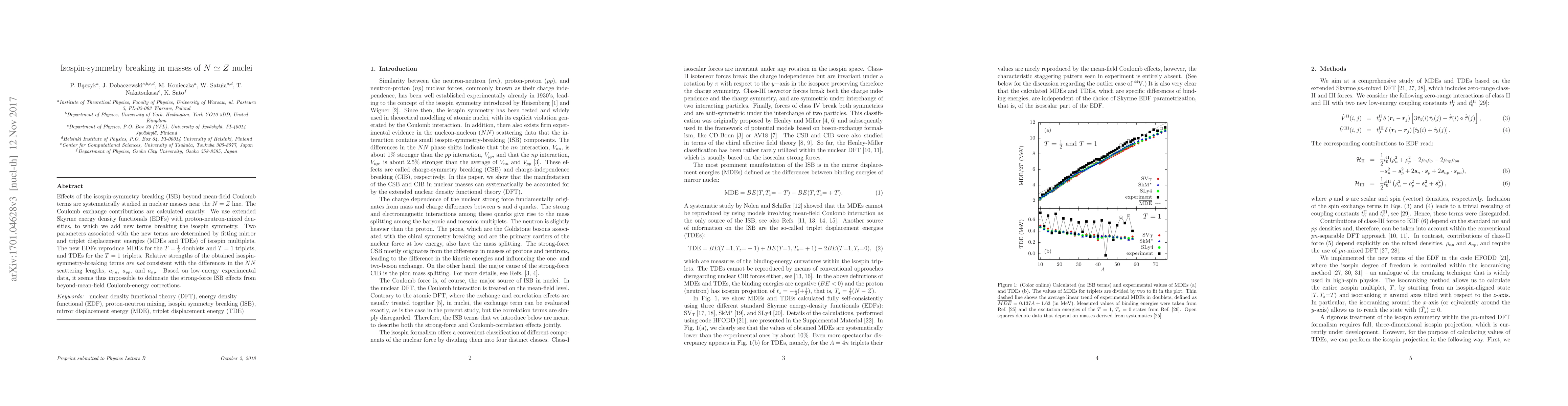 This paper investigates the effects of isospin-symmetry breaking in nuclear masses near the $N\simeq Z$ line using extended Skyrme energy density functionals, finding that new terms added to the functionals reproduce experimental displacement energies but do not align with known differences in neutron-neutron, proton-proton, and neutron-proton scattering lengths. The study concludes that strong-force ISB effects cannot be distinguished from beyond-mean-field Coulomb corrections.