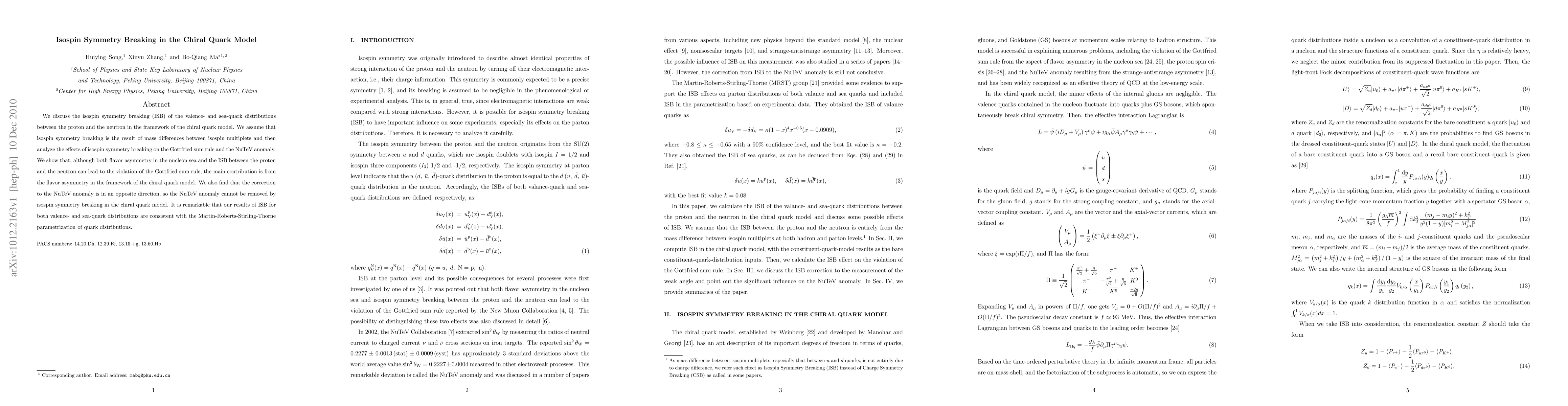 This paper investigates isospin symmetry breaking in the chiral quark model, showing that it primarily affects the Gottfried sum rule due to flavor asymmetry in the nucleon sea rather than directly addressing the NuTeV anomaly. The study finds consistency between its results and existing quark distribution parametrizations.