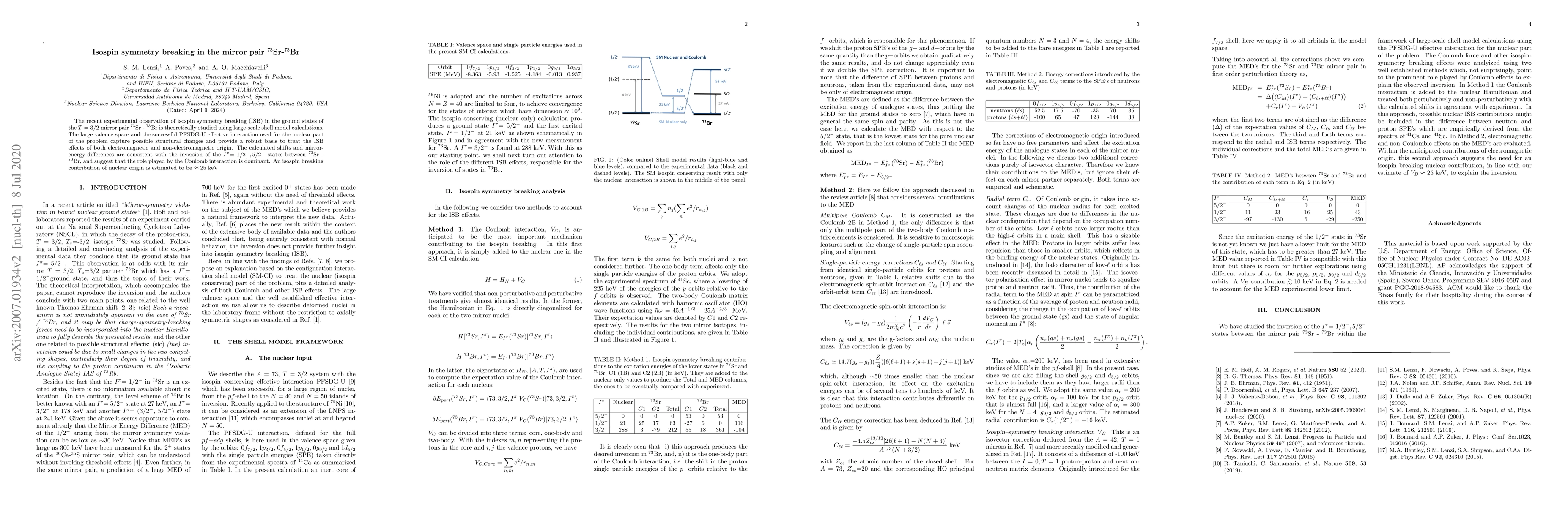 Researchers used shell model calculations to study isospin symmetry breaking in the $^{73}$Sr-$^{73}$Br mirror pair, finding a dominant role for the Coulomb interaction and an additional nuclear origin contribution of approximately 25 keV.