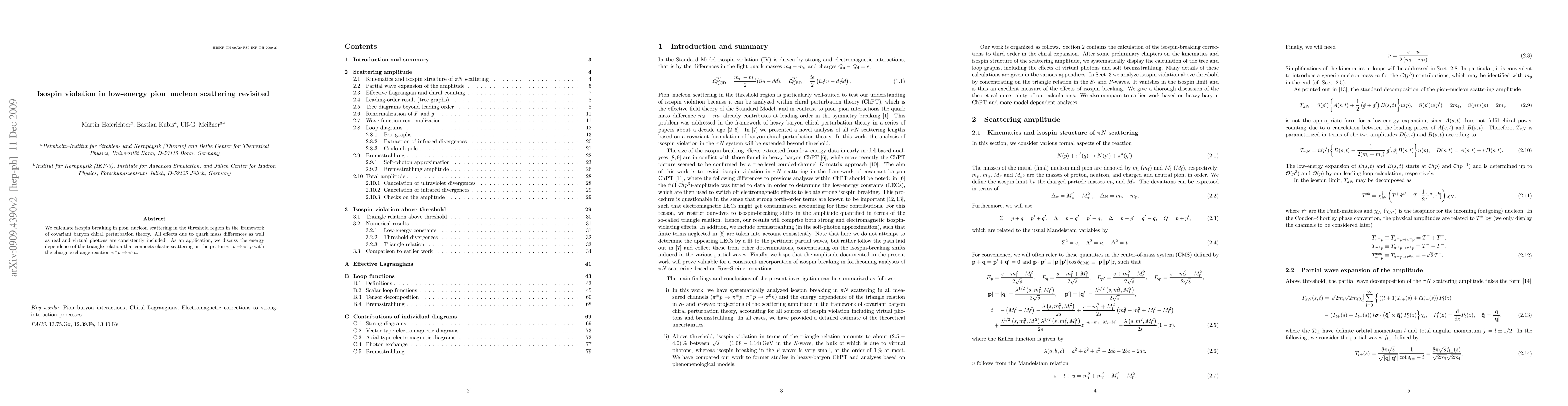 We calculate isospin breaking in pion-nucleon scattering in the threshold region in the framework of covariant baryon chiral perturbation theory. All effects due to quark mass differences as well as real and virtual photons are consistently included. As an application, we discuss the energy dependence of the triangle relation that connects elastic scattering on the proton pi+- p --> pi+- p with the charge exchange reaction pi- p --> pi0 n.