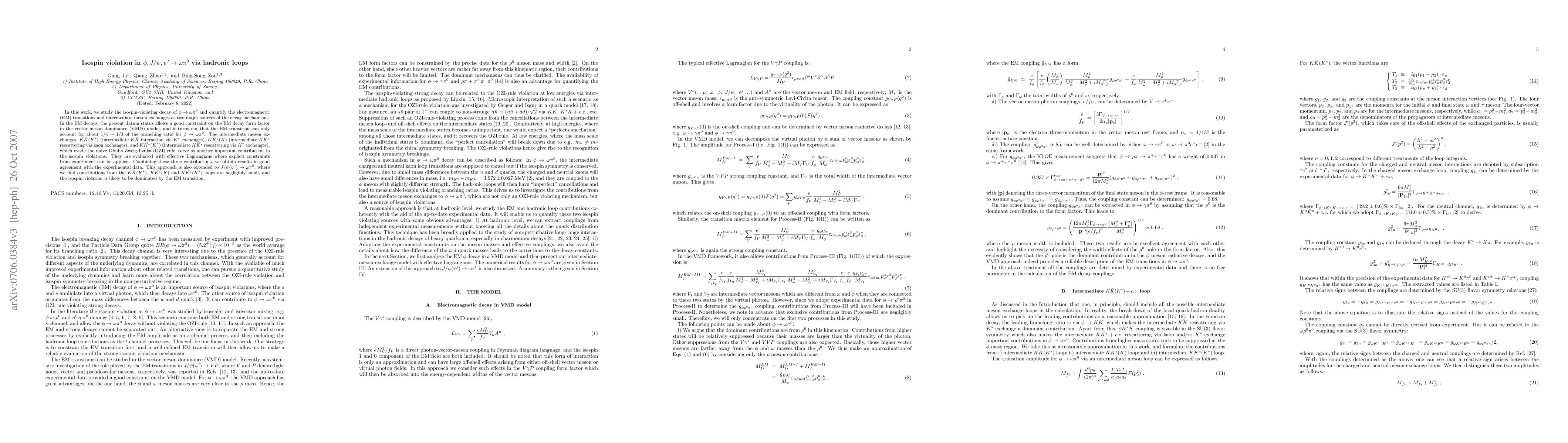 This paper investigates isospin-violating decays of $\phi$, $J/\psi$, and $\psi^\prime$ into $\omega\pi^0$, attributing the observed violations primarily to electromagnetic transitions and intermediate meson exchanges. The study finds that electromagnetic decays account for about 1/4 to 1/3 of the decay rate for $\phi\to\omega\pi^0$, while meson exchanges provide significant additional contributions.