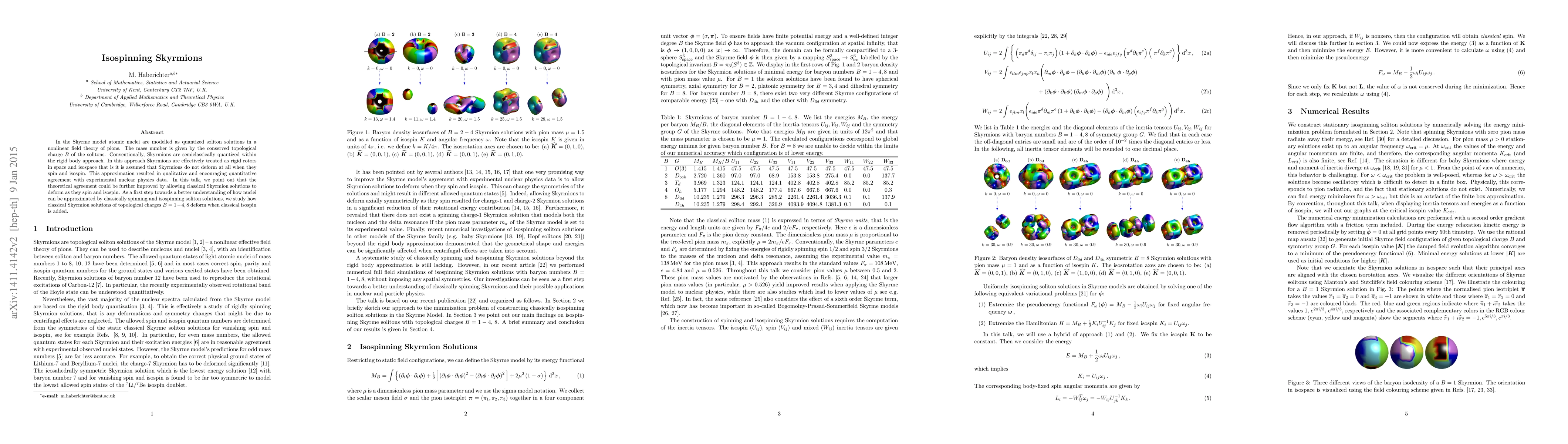 In the Skyrme model atomic nuclei are modelled as quantized soliton solutions in a nonlinear field theory of pions. The mass number is given by the conserved topological charge $B$ of the solitons. Conventionally, Skyrmions are semiclassically quantized within the rigid body approach. In this approach Skyrmions are effectively treated as rigid rotors in space and isospace that is it is assumed that Skyrmions do not deform at all when they spin and isospin. This approximation resulted in qualitative and encouraging quantitative agreement with experimental nuclear physics data. In this talk, we point out that the theoretical agreement could be further improved by allowing classical Skyrmion solutions to deform as they spin and isospin. As a first step towards a better understanding of how nuclei can be approximated by classically spinning and isospinning soliton solutions, we study how classical Skyrmion solutions of topological charges $B=1-4,8$ deform when classical isospin is added.