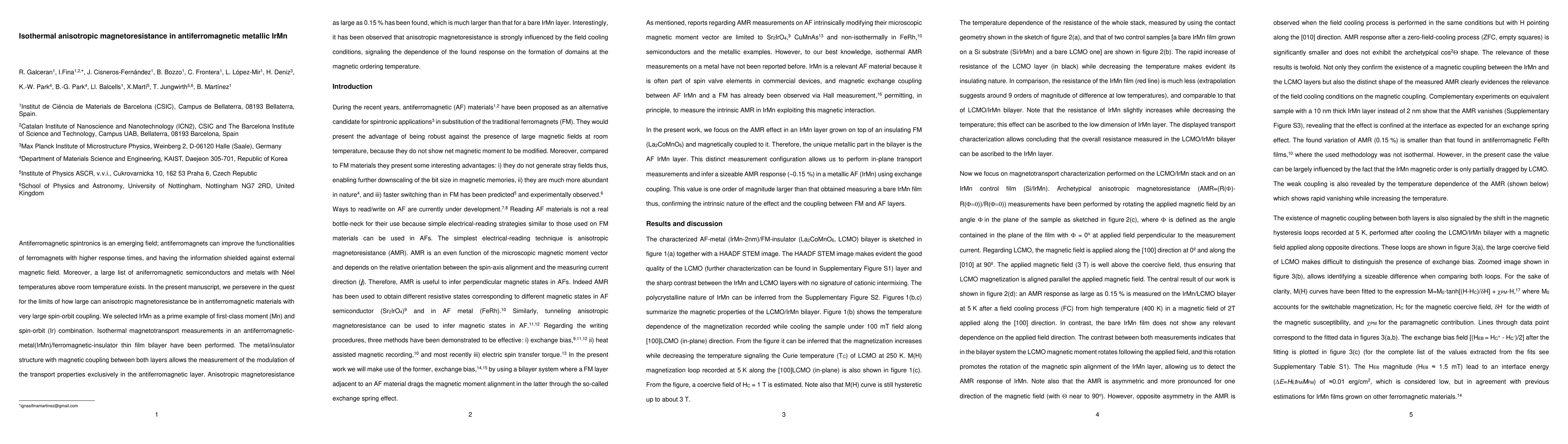 This paper investigates the isothermal anisotropic magnetoresistance in antiferromagnetic metallic IrMn, finding values as high as 0.15% in a bilayer with a ferromagnetic insulator. The observed large magnetoresistance is influenced by field cooling conditions, indicating the role of domain formation at the magnetic ordering temperature.