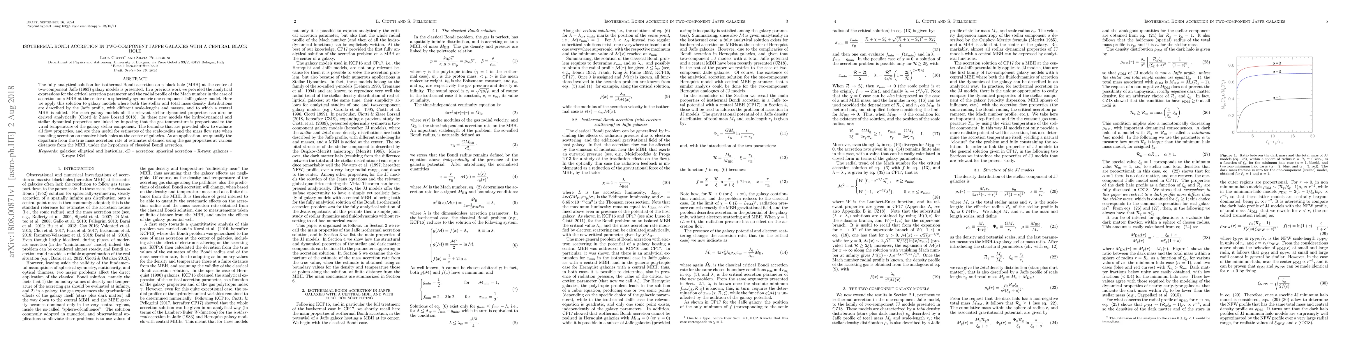 The fully analytical solution for isothermal Bondi accretion on a black hole (MBH) at the center of two-component Jaffe (1983) galaxy models is presented. In a previous work we provided the analytical expressions for the critical accretion parameter and the radial profile of the Mach number in the case of accretion on a MBH at the center of a spherically symmetric one-component Jaffe galaxy model. Here we apply this solution to galaxy models where both the stellar and total mass density distributions are described by the Jaffe profile, with different scale-lengths and masses, and to which a central MBH is added. For such galaxy models all the relevant stellar dynamical properties can also be derived analytically (Ciotti & Ziaee Lorzad 2018). In these new models the hydrodynamical and stellar dynamical properties are linked by imposing that the gas temperature is proportional to the virial temperature of the galaxy stellar component. The formulae that are provided allow to evaluate all flow properties, and are then useful for estimates of the scale-radius and the mass flow rate when modeling accretion on massive black holes at the center of galaxies. As an application, we quantify the departure from the true mass accretion rate of estimates obtained using the gas properties at various distances from the MBH, under the hypothesis of classical Bondi accretion.