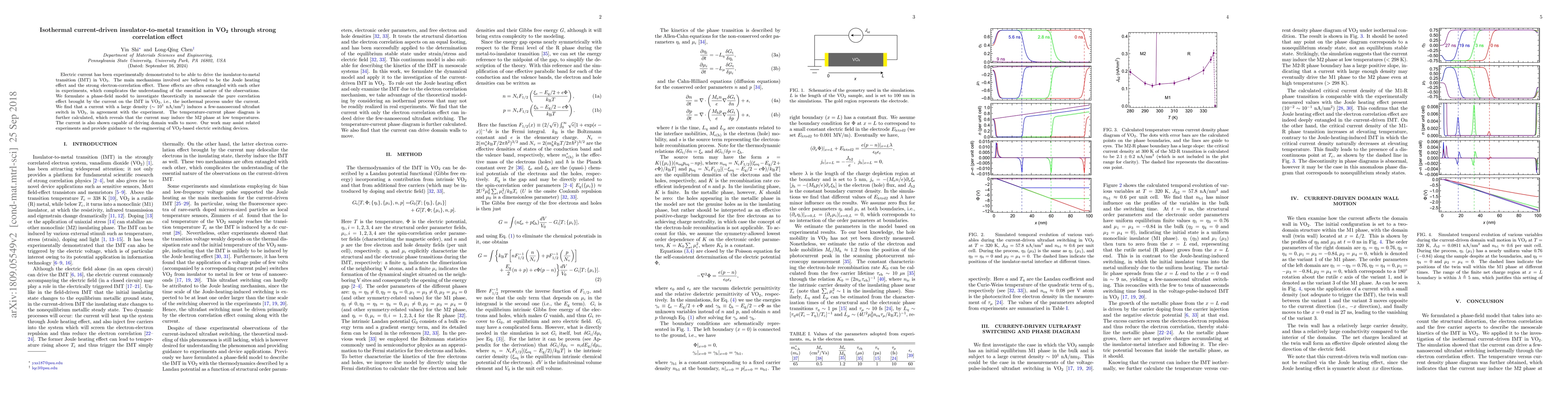 Electric current has been experimentally demonstrated to be able to drive the insulator-to-metal transition (IMT) in VO$_2$. The main mechanisms involved are believed to be the Joule heating effect and the strong electron-correlation effect. These effects are often entangled with each other in experiments, which complicates the understanding of the essential nature of the observations. We formulate a phase-field model to investigate theoretically in mesoscale the pure correlation effect brought by the current on the IMT in VO$_2$, i.e., the isothermal process under the current. We find that a current with a large density ($\sim 10^1$ nA/nm$^2$) induces a few-nanosecond ultrafast switch in VO$_2$, in agreement with the experiment. The temperature-current phase diagram is further calculated, which reveals that the current may induce the M2 phase at low temperatures. The current is also shown capable of driving domain walls to move. Our work may assist related experiments and provide guidance to the engineering of VO$_2$-based electric switching devices.