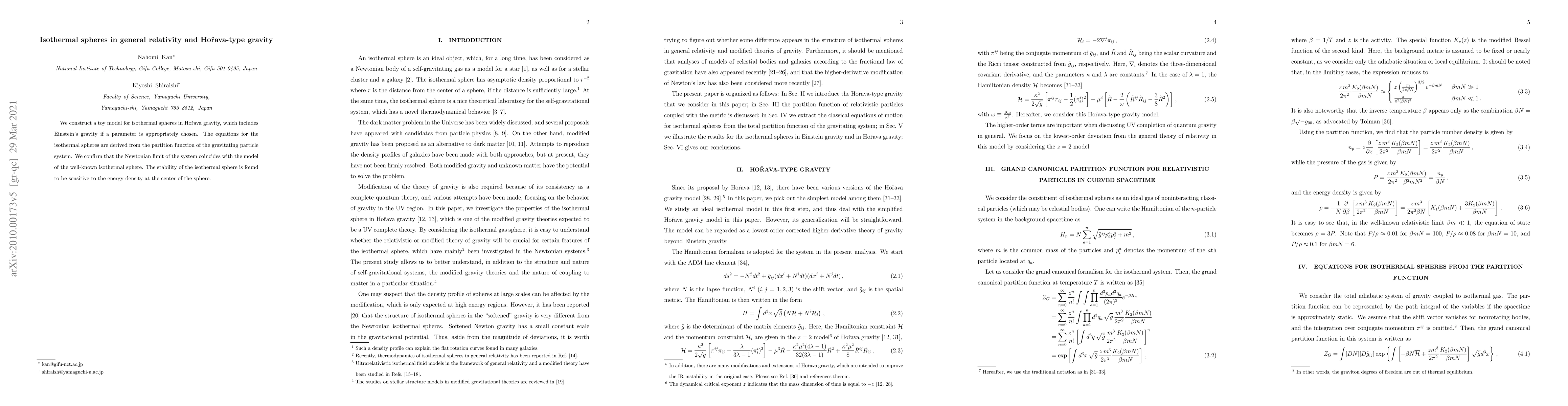 This paper constructs a model for isothermal spheres in Horava-type gravity, showing it reduces to Einstein's gravity under certain conditions. It finds that the stability of these spheres is influenced by the central energy density.