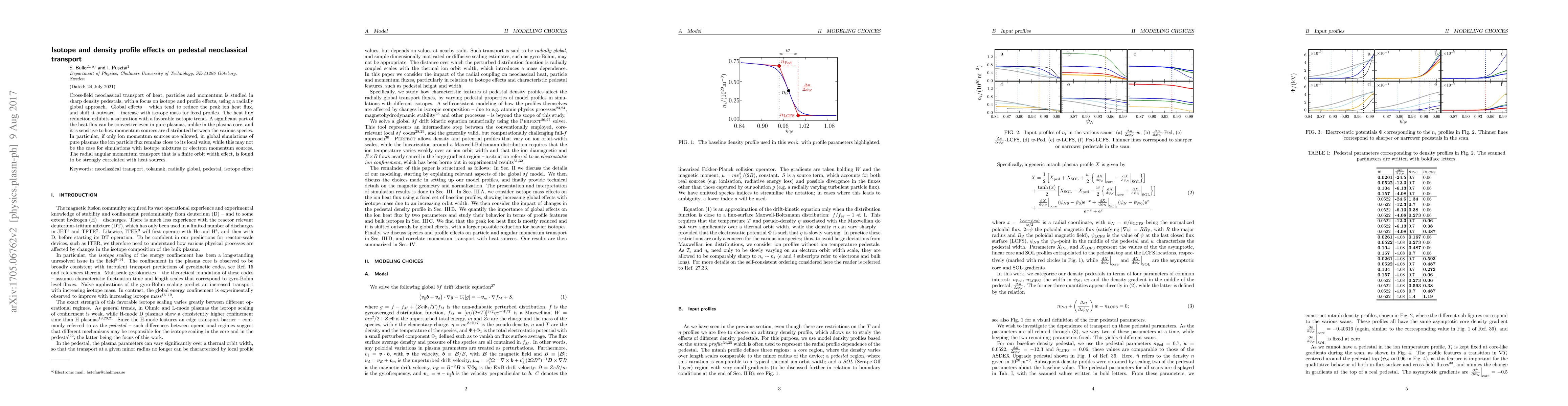 This paper investigates the effects of isotope mass and density profiles on neoclassical transport in plasma density pedestals, finding that global effects reduce peak ion heat flux and shift it outward, with a saturation trend favoring lighter isotopes. The study highlights that convective heat flux is significant in pure plasmas and is influenced by the distribution of momentum sources among species.