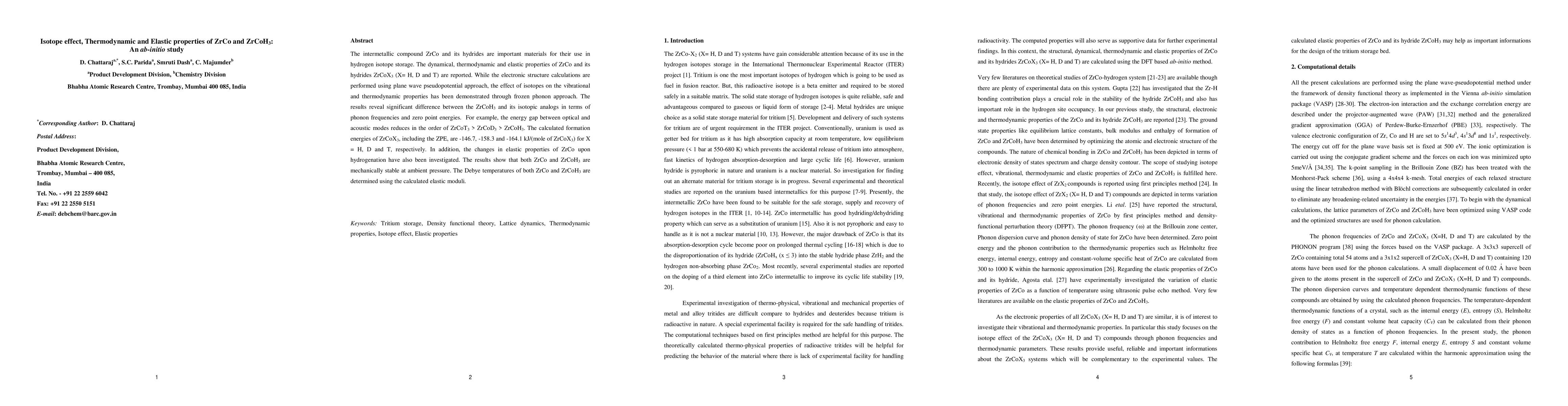 This study investigates the dynamical, thermodynamic, and elastic properties of ZrCo and its hydrides ZrCoH3, ZrCoD3, and ZrCoT3 using an ab-initio approach. The research highlights significant differences in phonon frequencies and zero-point energies among the isotopic analogs, with ZrCoT3 showing the largest energy gap reduction. The study also confirms the mechanical stability of both ZrCo and ZrCoH3 under ambient pressure.