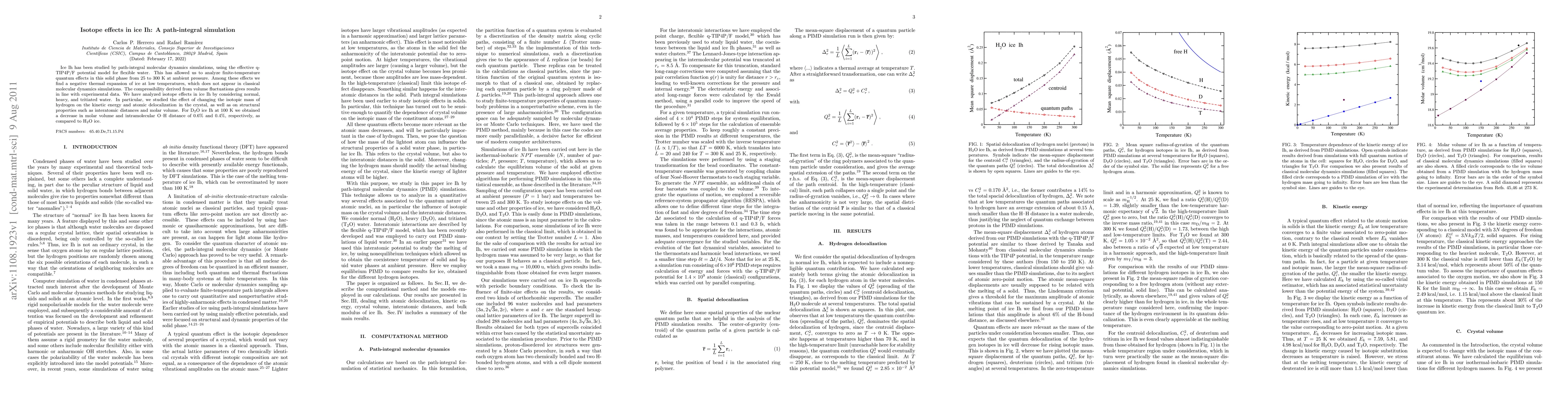 Ice Ih has been studied by path-integral molecular dynamics simulations, using the effective q-TIP4P/F potential model for flexible water. This has allowed us to analyze finite-temperature quantum effects in this solid phase from 25 to 300 K at ambient pressure. Among these effects we find a negative thermal expansion of ice at low temperatures, which does not appear in classical molecular dynamics simulations. The compressibility derived from volume fluctuations gives results in line with experimental data. We have analyzed isotope effects in ice Ih by considering normal, heavy, and tritiated water. In particular, we studied the effect of changing the isotopic mass of hydrogen on the kinetic energy and atomic delocalization in the crystal, as well as on structural properties such as interatomic distances and molar volume. For D$_2$O ice Ih at 100 K we obtained a decrease in molar volume and intramolecular O--H distance of 0.6% and 0.4%, respectively, as compared to H$_2$O ice.