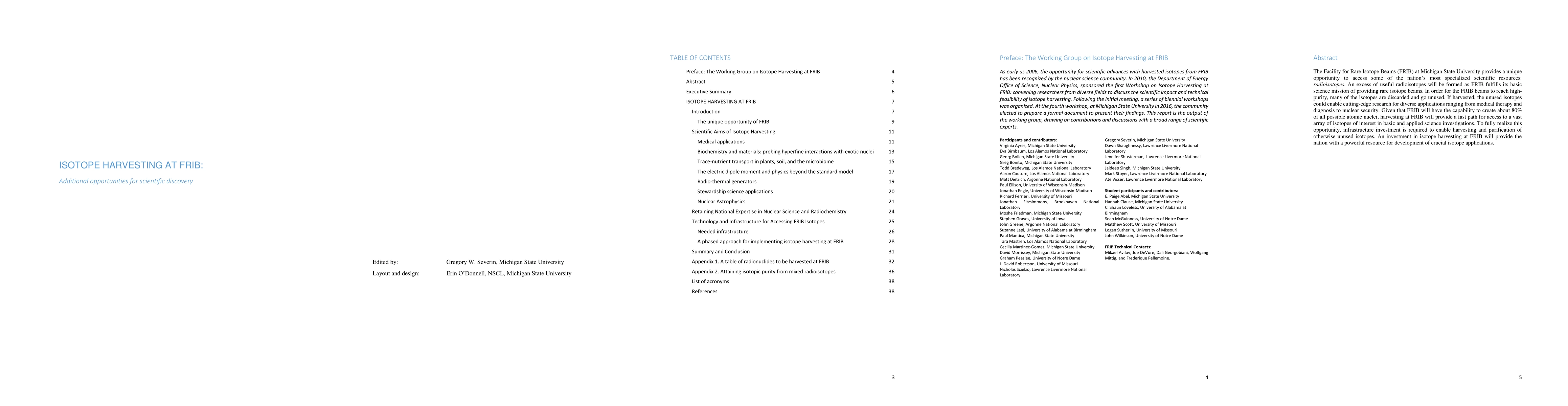The Facility for Rare Isotope Beams (FRIB) at Michigan State University provides a unique opportunity to access some of the nation's most specialized scientific resources: radioisotopes. An excess of useful radioisotopes will be formed as FRIB fulfills its basic science mission of providing rare isotope beams. In order for the FRIB beams to reach high-purity, many of the isotopes are discarded and go unused. If harvested, the unused isotopes could enable cutting-edge research for diverse applications ranging from medical therapy and diagnosis to nuclear security. Given that FRIB will have the capability to create about 80 percent of all possible atomic nuclei, harvesting at FRIB will provide a fast path for access to a vast array of isotopes of interest in basic and applied science investigations. To fully realize this opportunity, infrastructure investment is required to enable harvesting and purification of otherwise unused isotopes. An investment in isotope harvesting at FRIB will provide the nation with a powerful resource for development of crucial isotope applications.
