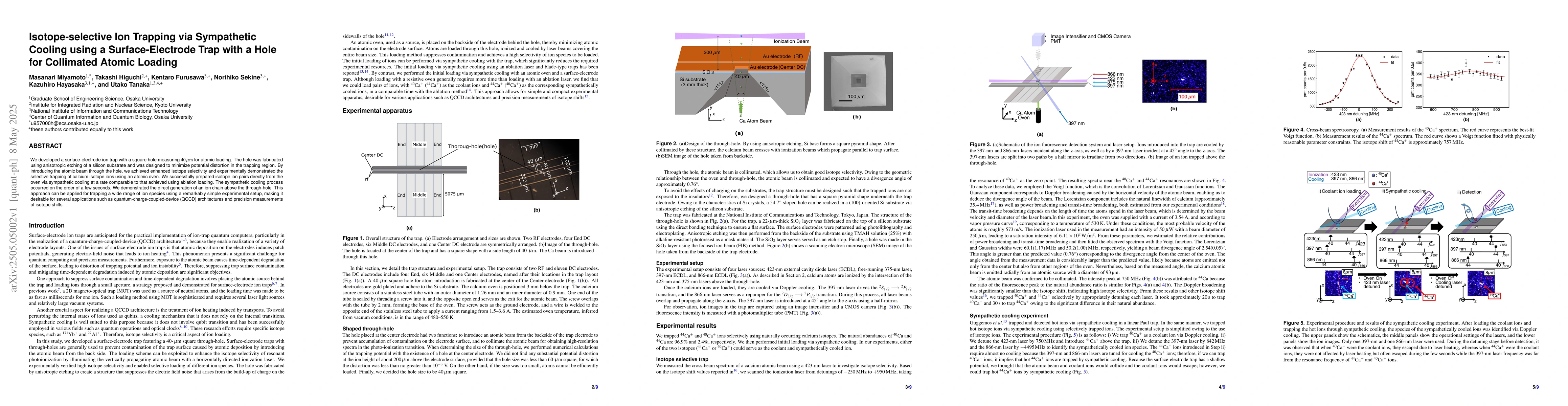 We developed a surface-electrode ion trap with a square hole measuring $40\,\mathrm{\mu m}$ for atomic loading. The hole was fabricated using anisotropic etching of a silicon substrate and was designed to minimize potential distortion in the trapping region. By introducing the atomic beam through the hole, we achieved enhanced isotope selectivity and experimentally demonstrated the selective trapping of calcium isotope ions using an atomic oven. We successfully prepared isotope ion pairs directly from the oven via sympathetic cooling at a rate comparable to that achieved using ablation loading. The sympathetic cooling process occurred on the order of a few seconds. We demonstrated the direct generation of an ion chain above the through-hole. This approach can be applied for trapping a wide range of ion species using a remarkably simple experimental setup, making it desirable for several applications such as quantum-charge-coupled-device (QCCD) architectures and precision measurements of isotope shifts.