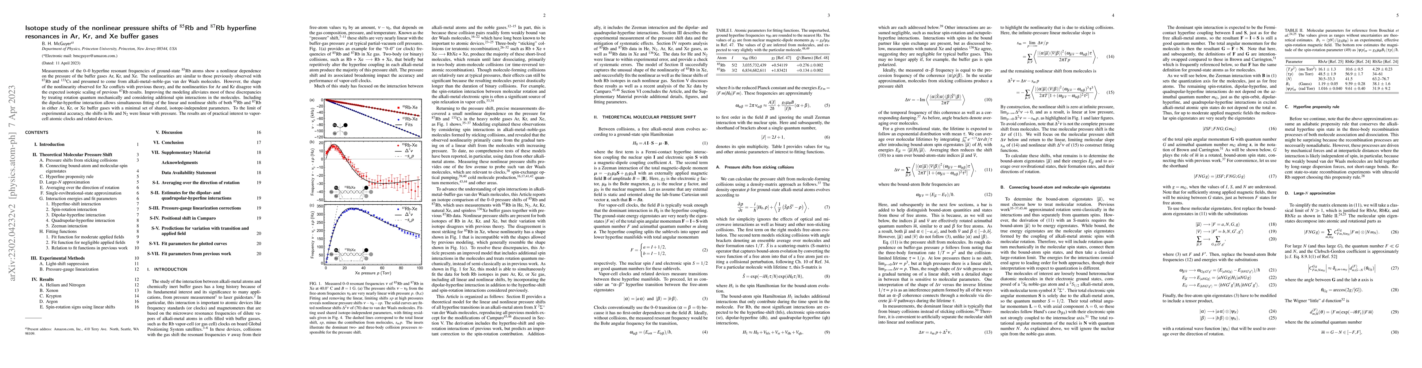 This study investigates the nonlinear pressure shifts in the hyperfine resonances of $^{85}$Rb and $^{87}$Rb in Ar, Kr, and Xe buffer gases, revealing discrepancies with prior theories. Improved modeling incorporating quantum mechanical rotation and additional spin interactions resolves most of these inconsistencies.