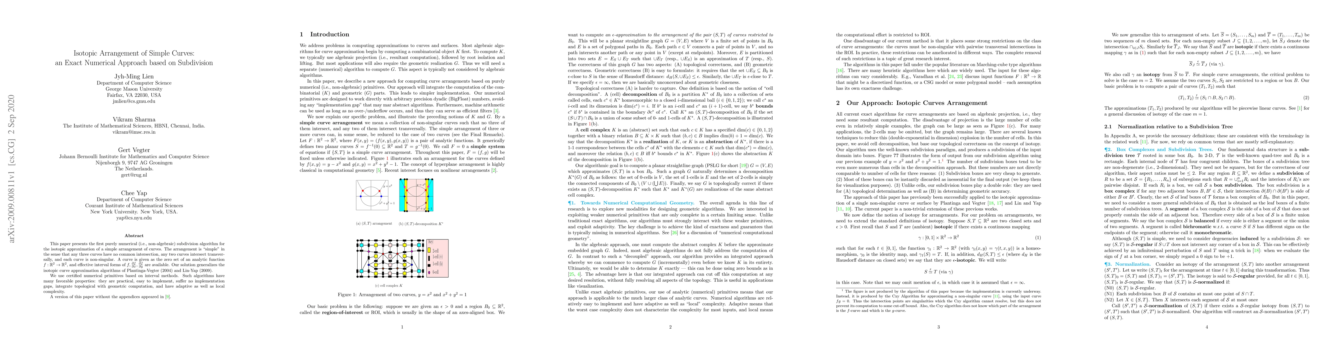This paper introduces a purely numerical subdivision algorithm for isotopic approximation of simple curve arrangements, employing certified numerical primitives based on interval methods. The method generalizes previous algebraic approaches, offering practical, adaptive, and topologically integrated computation.