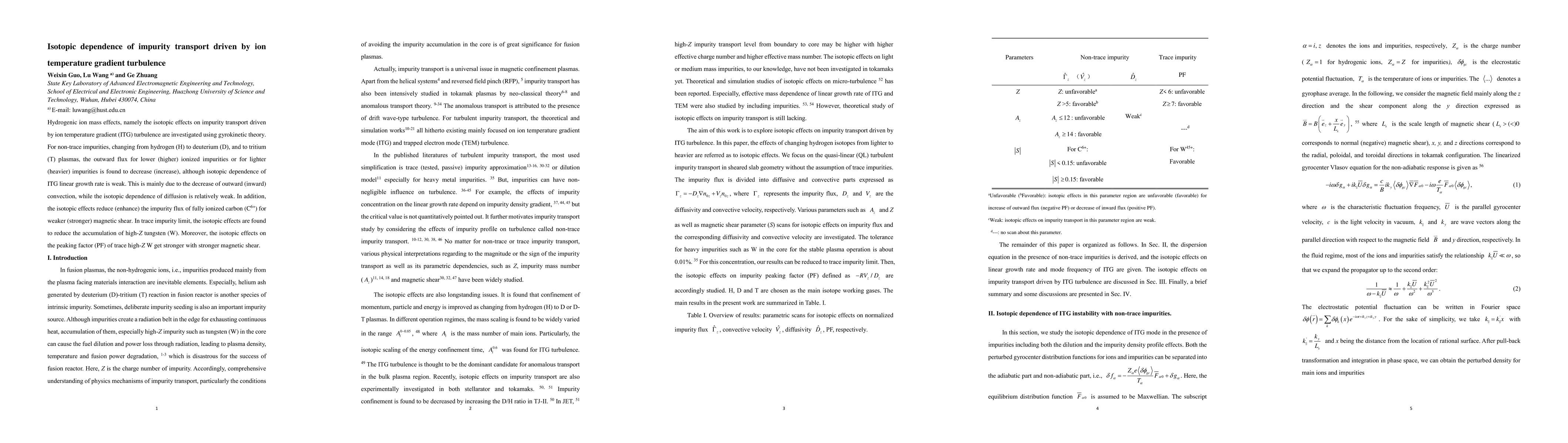 This study investigates how isotopic mass differences in hydrogenic ions affect impurity transport driven by ion temperature gradient turbulence using gyrokinetic theory. The research finds that isotopic changes from hydrogen to deuterium to tritium decrease the outward flux for lighter impurities, while the isotopic dependence on the linear growth rate of ITG turbulence is weak.