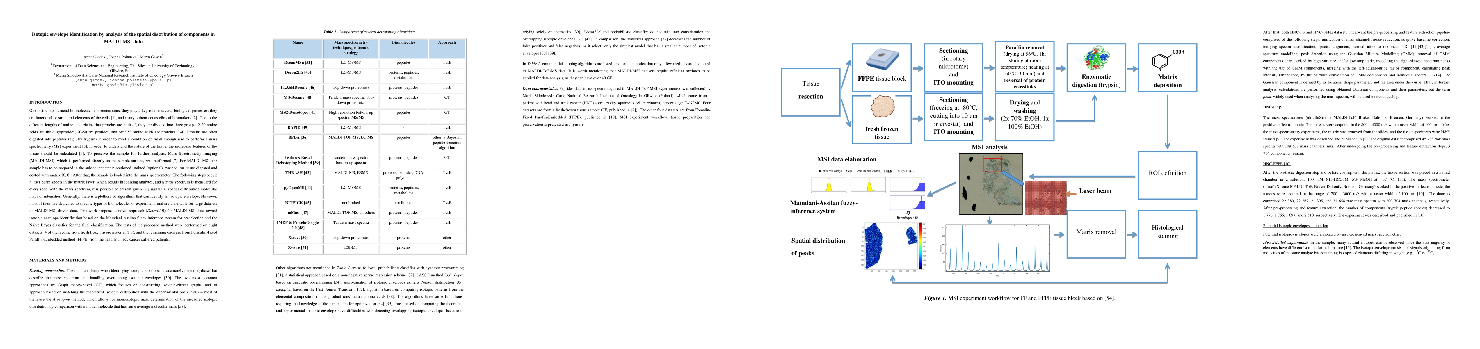 This paper introduces a novel method for identifying isotopic envelopes in MALDI-ToF molecular imaging data using Mamdani-Assilan fuzzy systems and spatial maps. The proposed algorithm outperforms existing deisotoping methods, especially in detecting overlapping envelopes and handling large datasets.