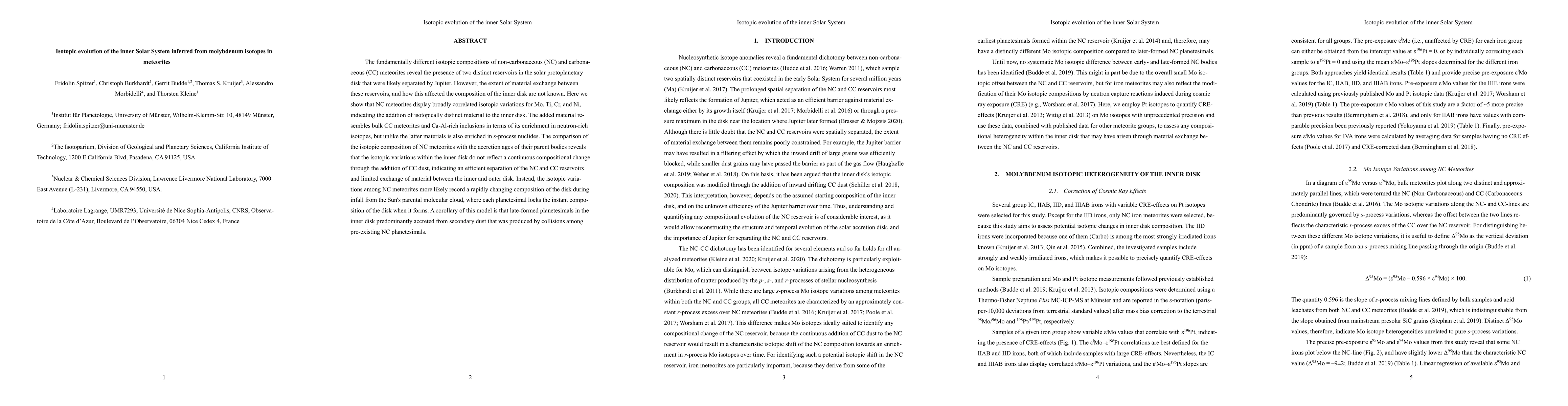 This study reveals that non-carbonaceous meteorites show correlated isotopic variations in Mo, Ti, Cr, and Ni, suggesting the addition of distinct material resembling carbonaceous meteorites and Ca-Al-rich inclusions. This indicates limited material exchange between the inner and outer solar protoplanetary disk, with isotopic variations reflecting a rapidly changing disk composition during planetesimal formation.