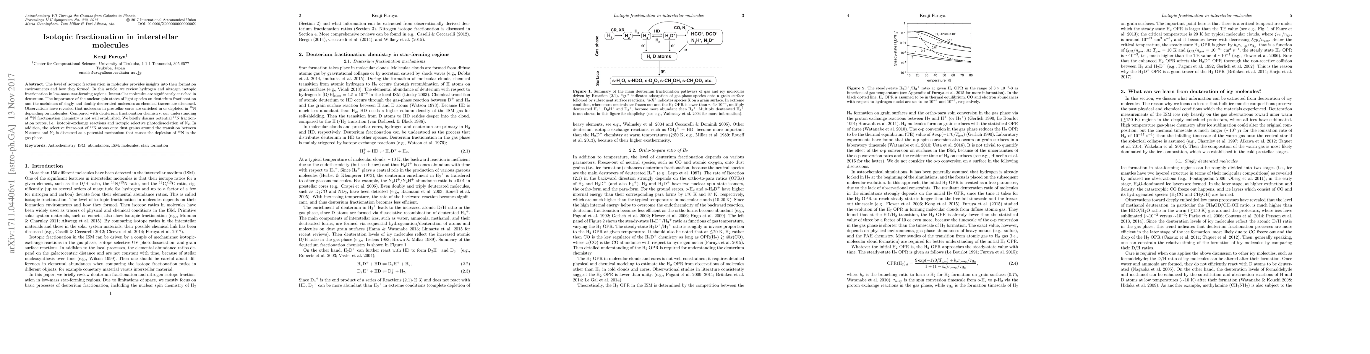 This paper reviews isotopic fractionation in interstellar molecules, focusing on hydrogen and nitrogen isotopes in low-mass star-forming regions. It highlights the significant enrichment of deuterium and the role of nuclear spin states in its fractionation, while noting the less established understanding of 15N fractionation, which includes potential mechanisms like isotopic-exchange reactions and selective freeze-out onto dust grains.
