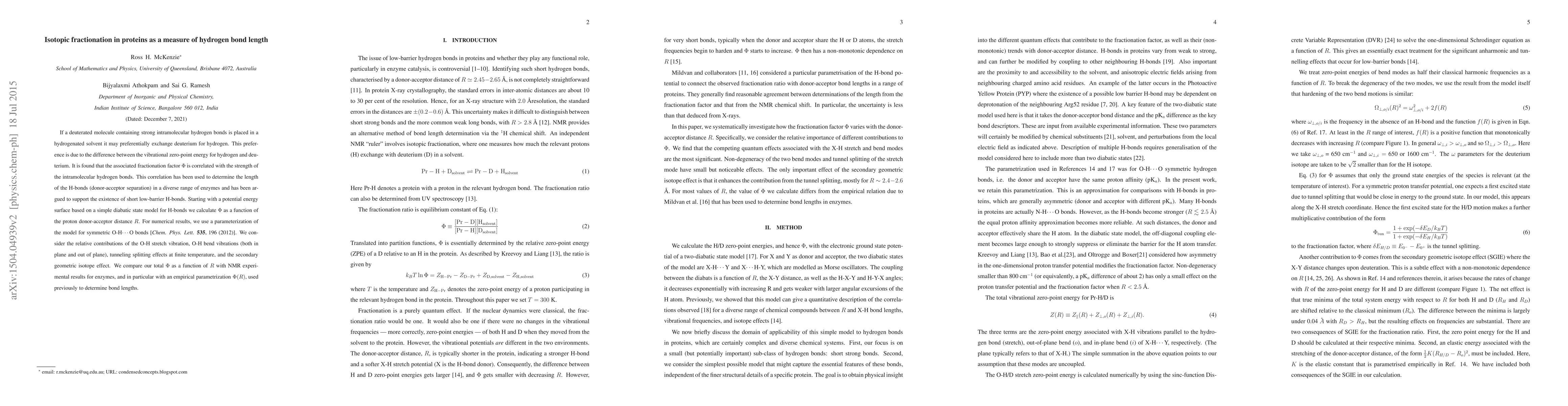 This paper investigates the isotopic fractionation in proteins to measure hydrogen bond lengths, finding that fractionation factor $\Phi$ correlates with hydrogen bond strength. The study uses a diabatic state model to calculate $\Phi$ as a function of donor-acceptor distance $R$, comparing theoretical results with NMR experimental data to support the existence of short low-barrier hydrogen bonds in enzymes.