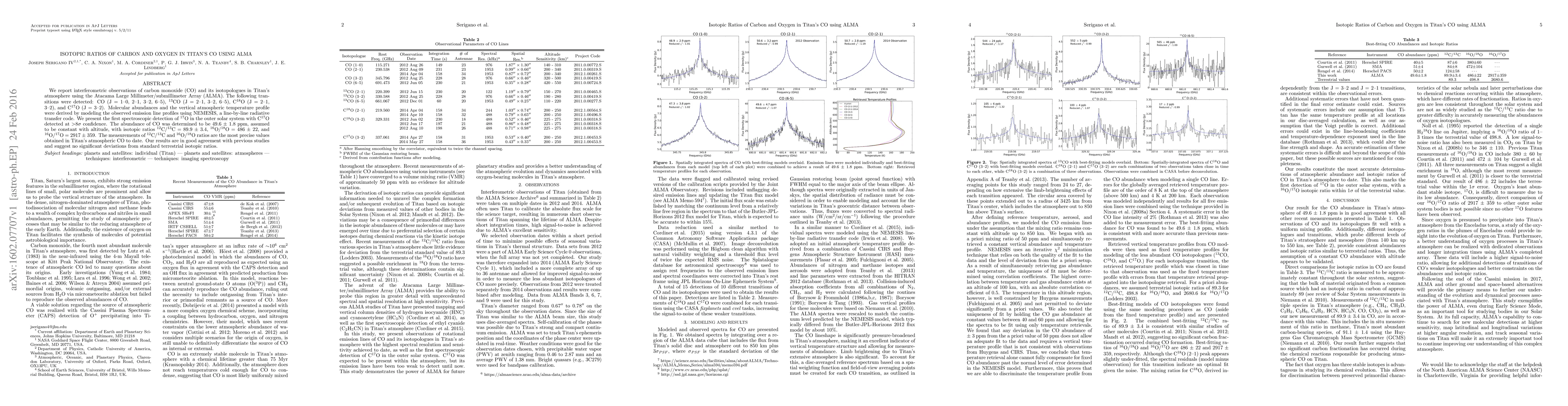 This study uses ALMA to observe carbon monoxide and its isotopologues in Titan's atmosphere, determining precise isotopic ratios and atmospheric temperature profiles. The findings include the first spectroscopic detection of C$^{17}$O and the most accurate isotopic ratios for CO in Titan's atmosphere to date, showing consistency with terrestrial isotopic standards.