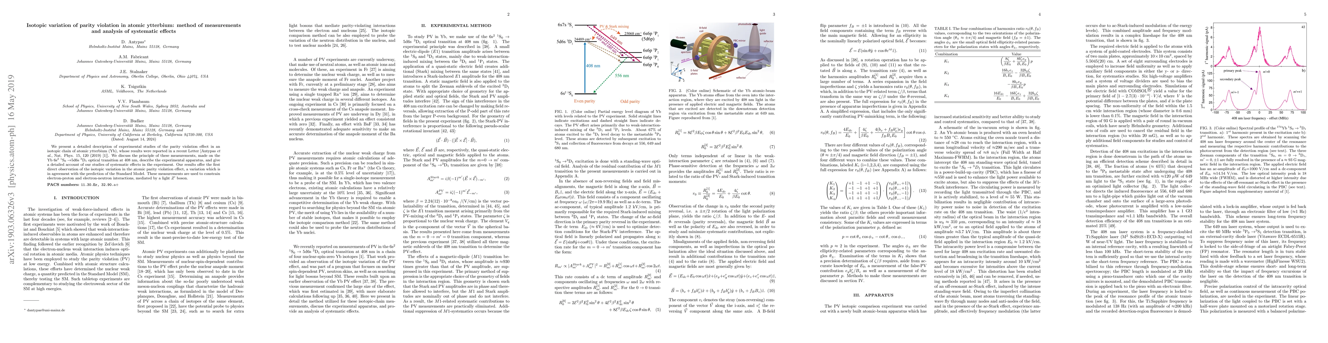 We present a detailed description of experimental studies of the parity violation effect in an isotopic chain of atomic ytterbium (Yb), whose results were reported in a recent Letter [Antypas et al., Nat. Phys. 15, 120 (2019)]. We discuss the principle of these measurements, made on the Yb 6s$^2$ $^1$S$_0 \rightarrow $5d6s $^3$D$_1$ optical transition at 408 nm, describe the experimental apparatus, and give a detailed account of our studies of systematic effects in the experiment. Our results offer the first direct observation of the isotopic variation in the atomic parity violation effect, a variation which is in agreement with the prediction of the Standard Model. These measurements are used to constrain electron-proton and electron-neutron interactions, mediated by a light $Z'$ boson.