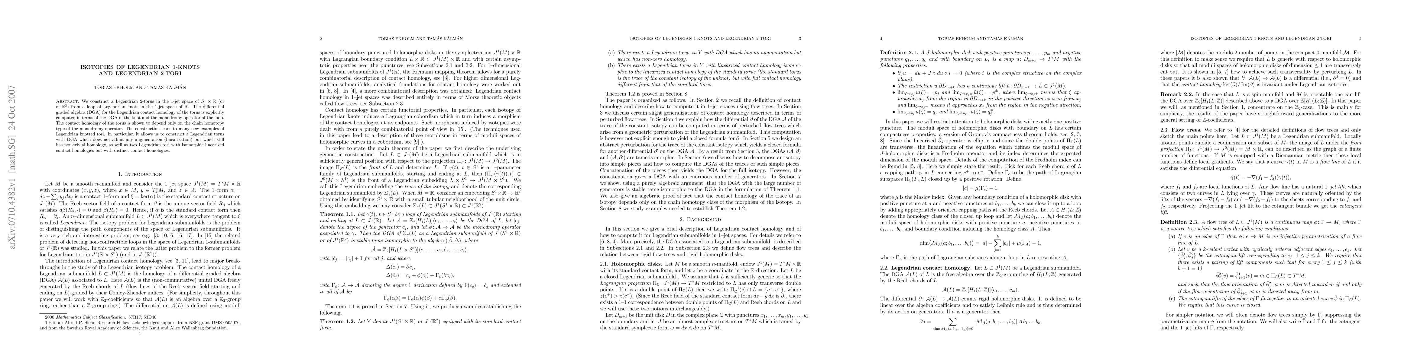 This paper constructs a Legendrian 2-torus from a loop of Legendrian knots, computes its contact homology, and shows it depends on the monodromy operator's chain homotopy type, leading to new examples of knotted tori, including some without augmentation but with non-trivial homology.
