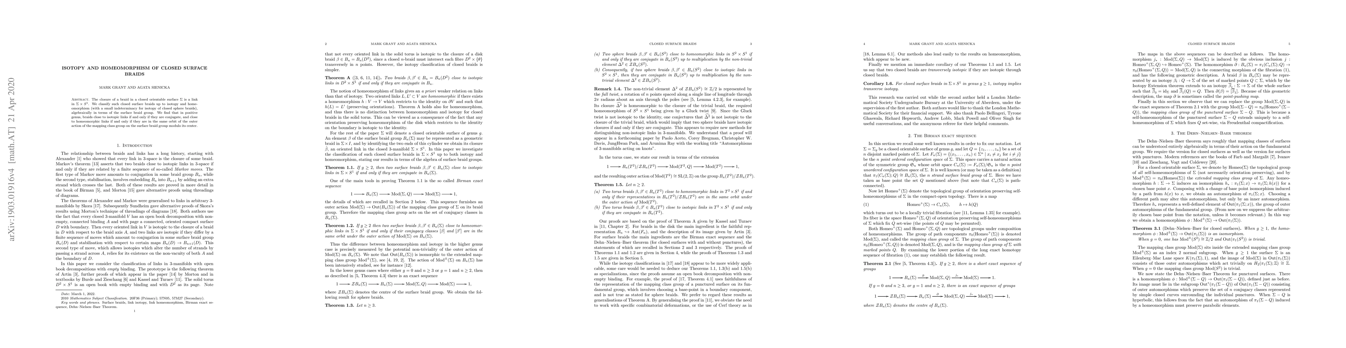 The paper classifies closed surface braids up to isotopy and homeomorphism using the surface braid group, showing that positive genus braids close to isotopic links if conjugate, and close to homeomorphic links if in the same orbit of the mapping class group.