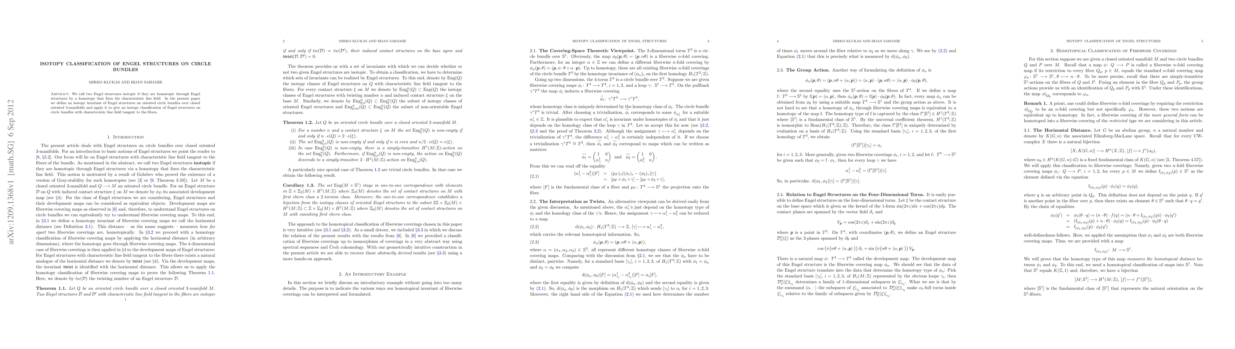 This paper defines an isotopy invariant for Engel structures on oriented circle bundles over closed three-manifolds, and uses it to classify such structures up to isotopy, focusing on bundles where the characteristic line field is tangent to the fibers.