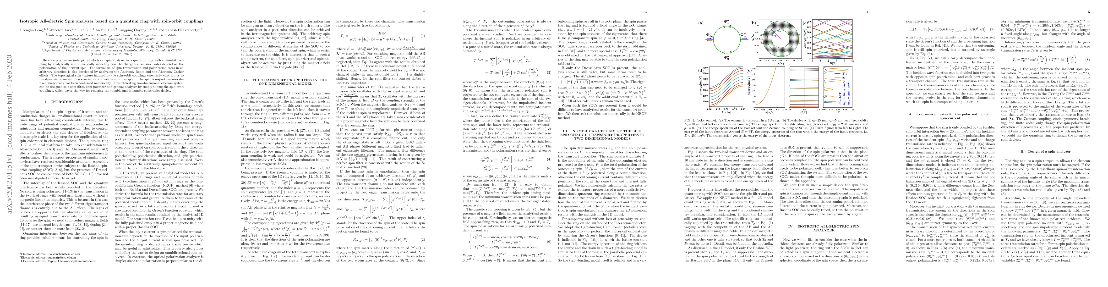Researchers propose an isotropic all-electric spin analyzer in a quantum ring with spin-orbit coupling, enabling tunable and integrable spintronics devices for applications like spin filtering and polarizing.