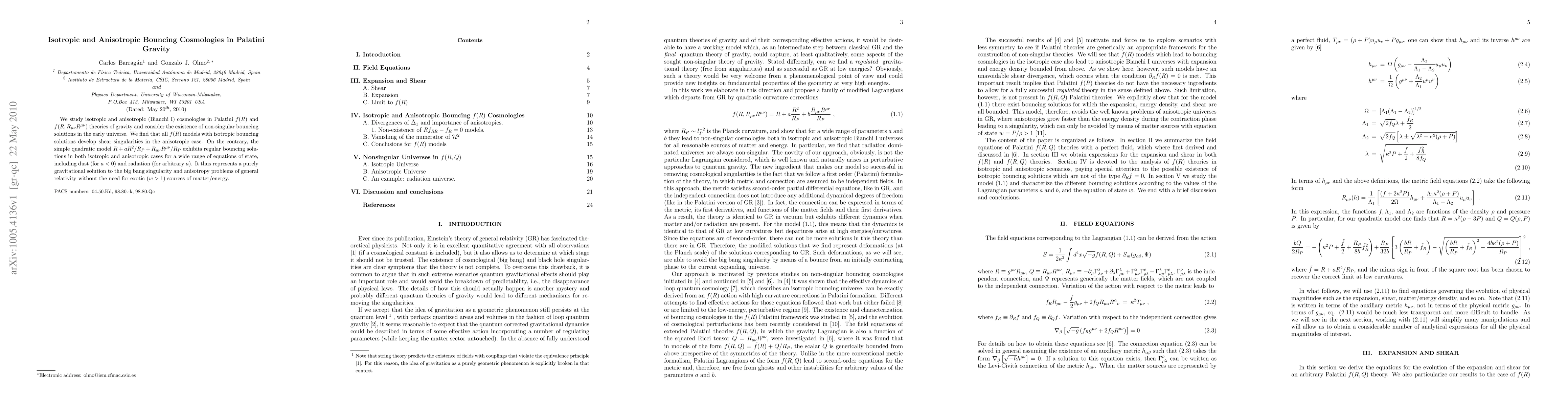 The research investigates isotropic and anisotropic cosmologies in Palatini $f(R)$ and $f(R,R_{\mu\nu}R^{\mu\nu})$ theories, focusing on non-singular bouncing solutions in the early universe.