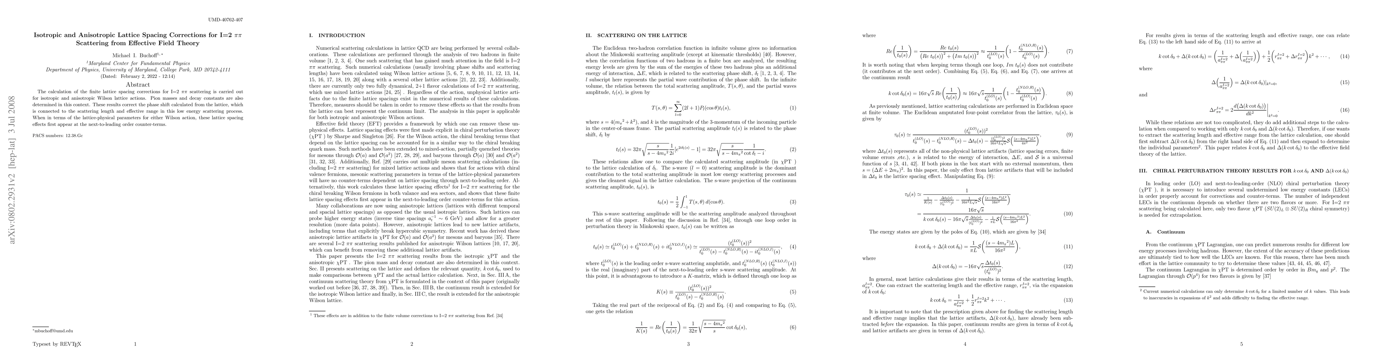The calculation of the finite lattice spacing corrections for I=2 pi-pi scattering is carried out for isotropic and anisotropic Wilson lattice actions. Pion masses and decay constants are also determined in this context. These results correct the phase shift calculated from the lattice, which is connected to the scattering length and effective range in this low energy scattering process. When in terms of the lattice-physical parameters for either Wilson action, these lattice spacing effects first appear at the next-to-leading order counter-terms.