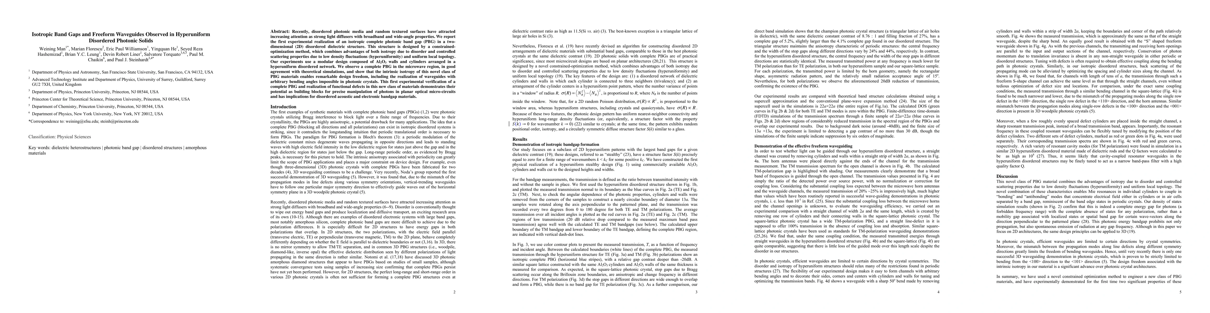 Paul J. Steinhardt, Salvatore Torquato, Peter Keim et al.