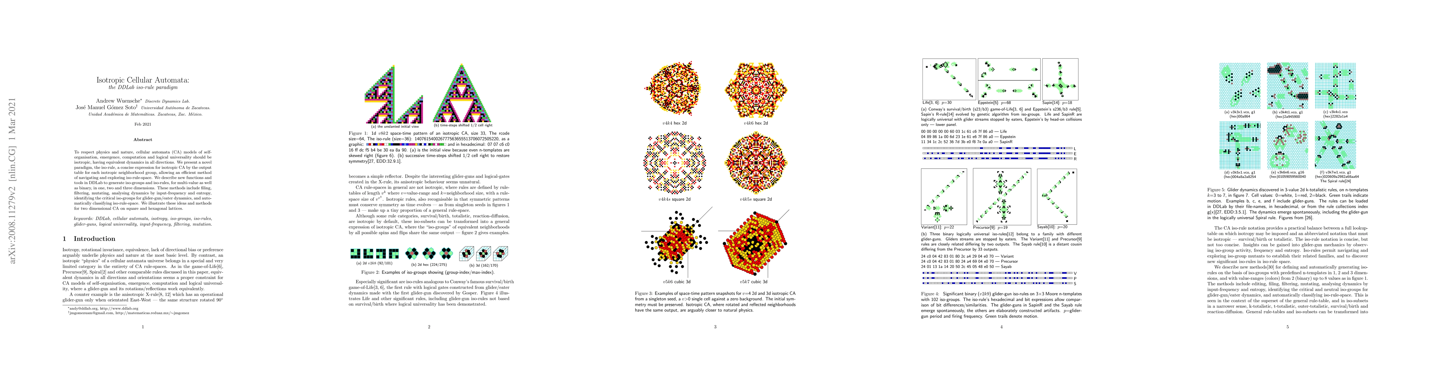 To respect physics and nature, cellular automata (CA) models of self-organisation, emergence, computation and logical universality should be isotropic, having equivalent dynamics in all directions. We present a novel paradigm, the iso-rule, a concise expression for isotropic CA by the output table for each isotropic neighborhood group, allowing an efficient method of navigating and exploring iso-rule-space. We describe new functions and tools in DDLab to generate iso-groups and iso-rules, for multi-value as well as binary, in one, two and three dimensions. These methods include filing, filtering, mutating, analysing dynamics by input-frequency and entropy, identifying the critical iso-groups for glider-gun/eater dynamics, and automatically classifying iso-rule-space. We illustrate these ideas and methods for two dimensional CA on square and hexagonal lattices.