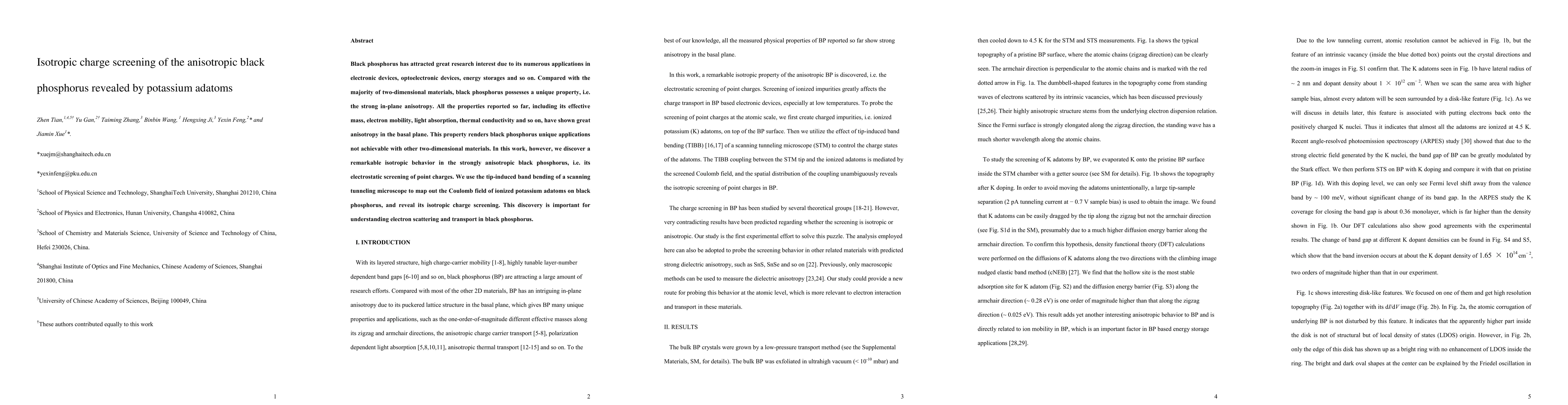 This research reveals that potassium adatoms induce isotropic charge screening in the otherwise strongly anisotropic black phosphorus, challenging its typical anisotropic behavior. This finding, observed via scanning tunneling microscopy, has implications for electron scattering and transport mechanisms in black phosphorus.