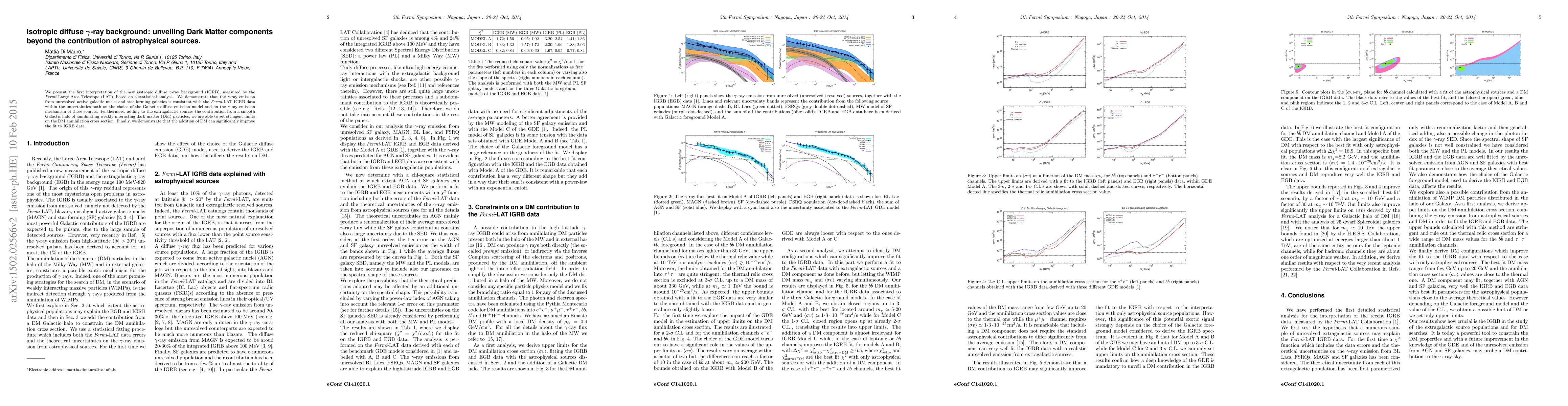 This paper analyzes the isotropic diffuse gamma-ray background (IGRB) measured by the Fermi LAT, showing that astrophysical sources like active galactic nuclei and star-forming galaxies explain the data. The study also sets limits on dark matter annihilation cross sections and finds that dark matter contributions can significantly enhance the fit to IGRB data.