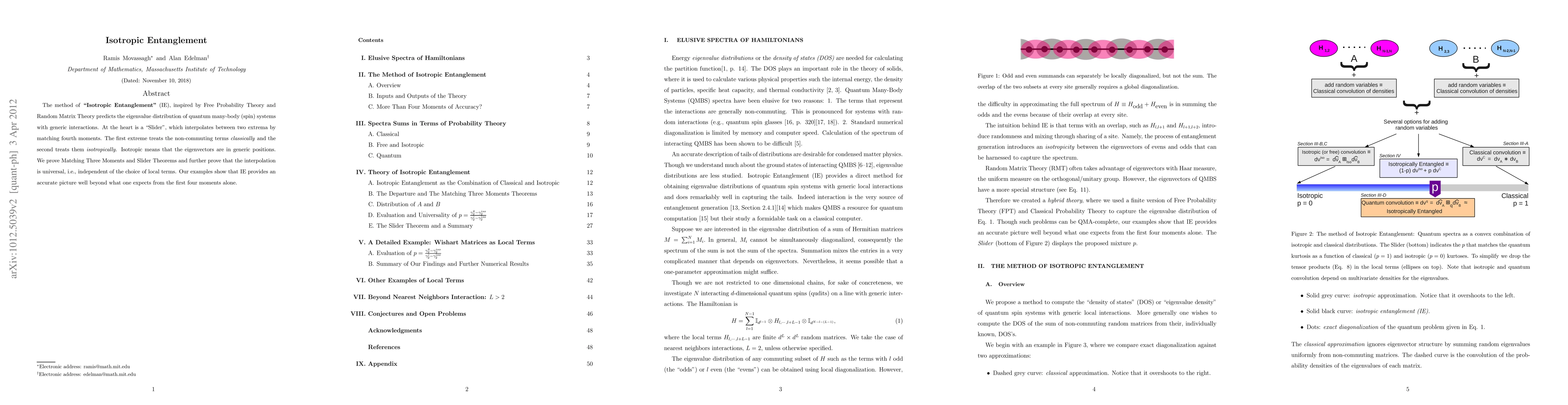 The method of "Isotropic Entanglement" (IE), inspired by Free Probability Theory and Random Matrix Theory, predicts the eigenvalue distribution of quantum many-body (spin) systems with generic interactions. At the heart is a "Slider", which interpolates between two extrema by matching fourth moments. The first extreme treats the non-commuting terms classically and the second treats them isotropically. Isotropic means that the eigenvectors are in generic positions. We prove Matching Three Moments and Slider Theorems and further prove that the interpolation is universal, i.e., independent of the choice of local terms. Our examples show that IE provides an accurate picture well beyond what one expects from the first four moments alone.