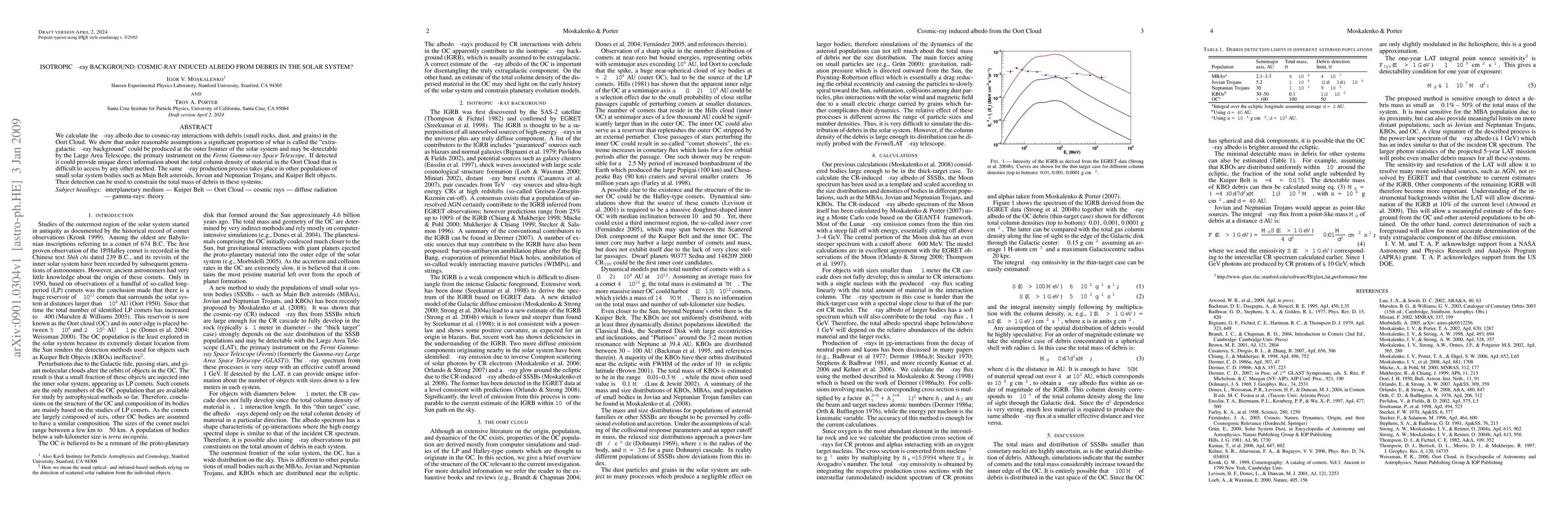 This research proposes that a significant portion of the 'extragalactic gamma-ray background' may originate from cosmic-ray interactions with debris in the Oort Cloud, potentially detectable by Fermi's Large Area Telescope. Detection could offer insights into the Oort Cloud's material density. Similar processes occur in other solar system debris populations, aiding in mass estimation of these systems.