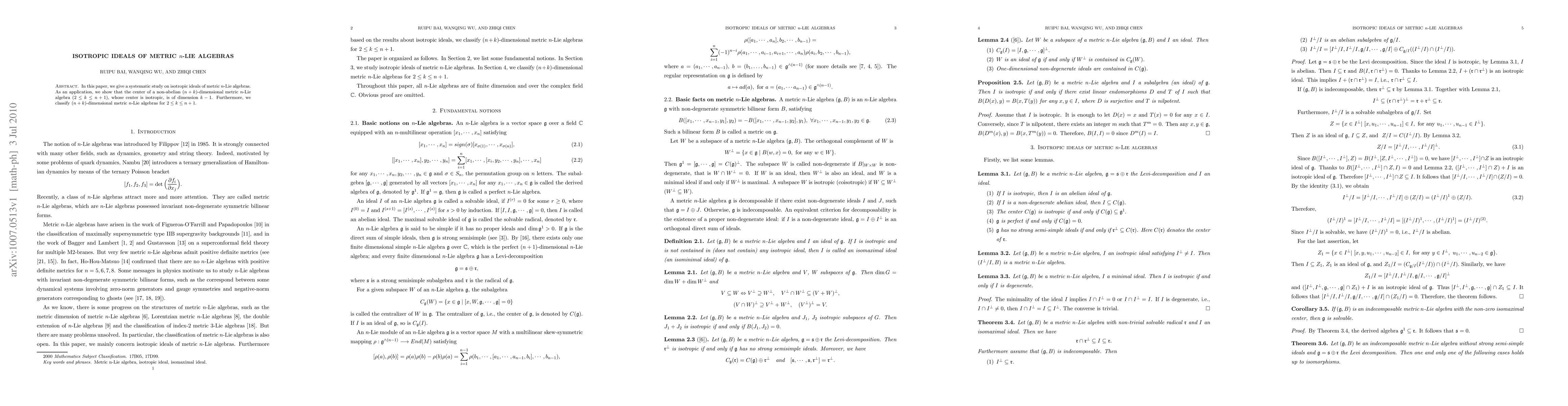 This paper systematically investigates isotropic ideals in metric n-Lie algebras, demonstrating that the center of a non-abelian (n+k)-dimensional metric n-Lie algebra with an isotropic center has dimension k-1. It also classifies (n+k)-dimensional metric n-Lie algebras for 1< k < n+2.